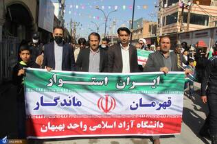 به گزارش خبرنگار گروه استانهای خبرگزاری آنا، دانشگاهیان دانشگاه آزاد اسلامی در واحدهای دانشگاهی سراسر کشور همراه، همگام و همصدا با اقشار مردم در راهپیمایی ۲۲ بهمن شرکت کردند.