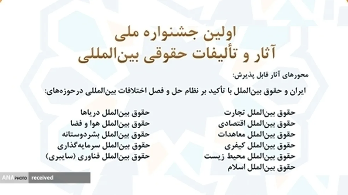 به گزارش گروه دانش و فناوری خبرگزاری آنا، محورهای قابل پذیرش در این جشنواره شامل موضوعات ایران و حقوق بینالملل با تاکید بر نظام حلوفصل اختلافات بینالمللی در حوزههای «حقوق بینالملل تجارت»، «حقوق بینالملل اقتصادی»، «حقوق بینالملل دریاها»، «حقوق بینالملل معاهدات»، «حقوق بینالملل کیفری»، «حقوق بینالملل محیط زیست»، «حقوق بینالملل بشردوستانه»»حقوق بینالملل سرمایهگذاری»، «حقوق بینالملل فناوری (سایبری)» و سایر میشود.
