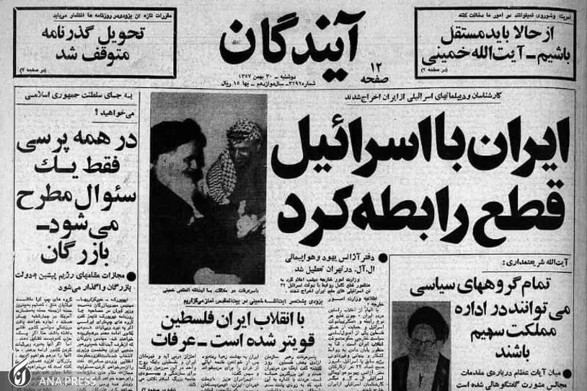 موشه دایان وزیر خارجه اسرائیل درباره قطع روابط ایران با اسرائیل گفت: من از این مسئله متاسفم، اما باید آنرا به عنوان یک واقعیت بپذیریم. دایان با بیان این که نگران حضور هیئت فلسطینی در ایران نیست چرا که حکومت ایران اسلامی است و این دیدارها عادی است گفت: با این وجود اگر ایران به فکر حمایت چریکی و نظامی از فلسطینیها بیفتد این موضوع شکل دیگری یافته و خطرناک میشود.