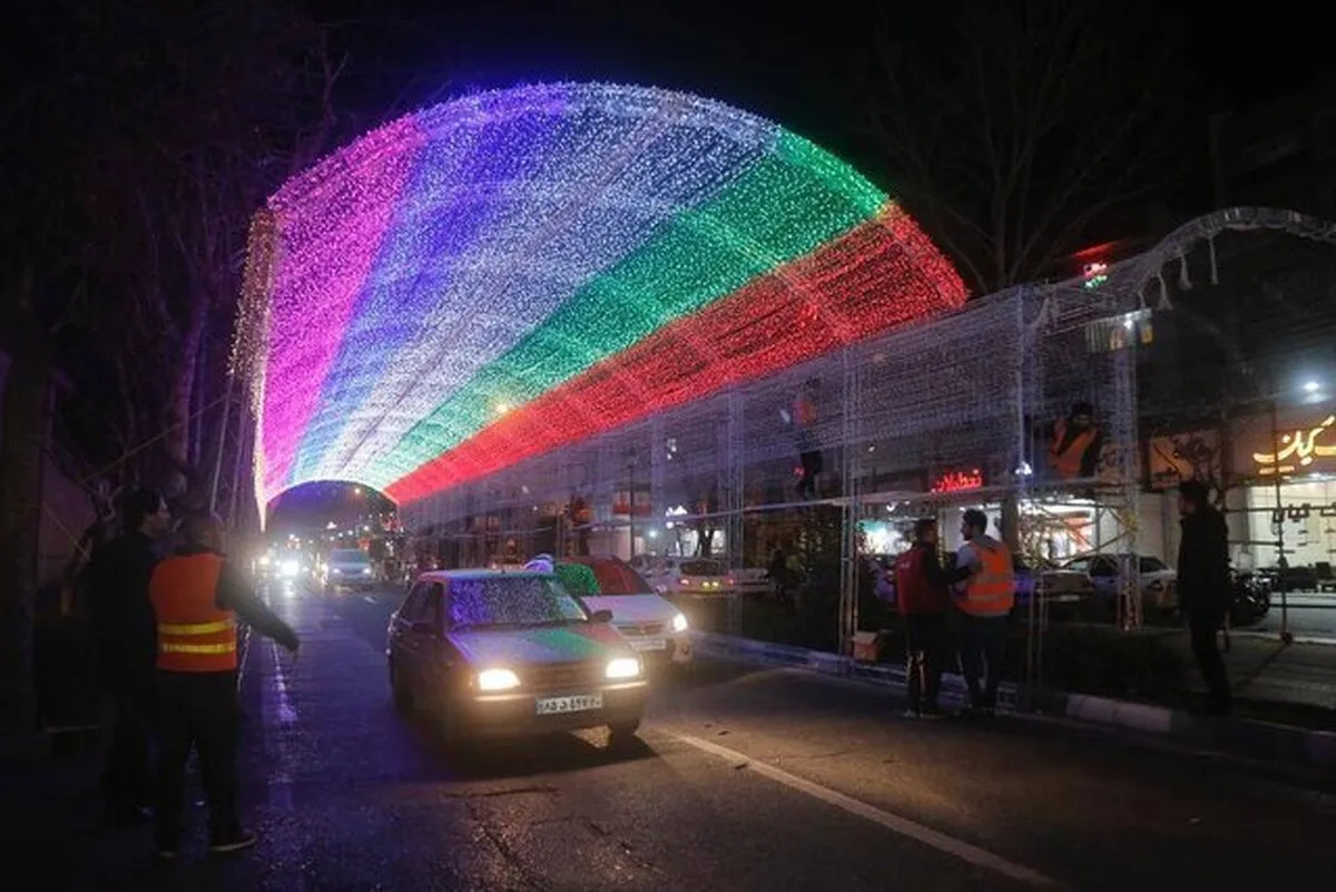 اجرای تونل نوری هفت رنگ در تهران به مناسبت اعیاد شعبانیه