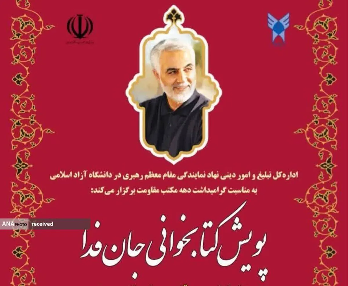 به گزارش خبرنگار گروه دانش و فناوری خبرگزاری آنا، پویش کتابخوانی جان فدا با محوریت کتاب «من قاسم سلیمانی هستم» نوشته ناصر کاوه، به همت اداره کل تبلیغ و امور دینی نهاد نمایندگی مقام معظم رهبری در دانشگاه آزاد اسلامی در دهه مکتب مقاومت از 9 تا 19 دی 1401 برگزار و تا 22 بهمن تمدید شد.
