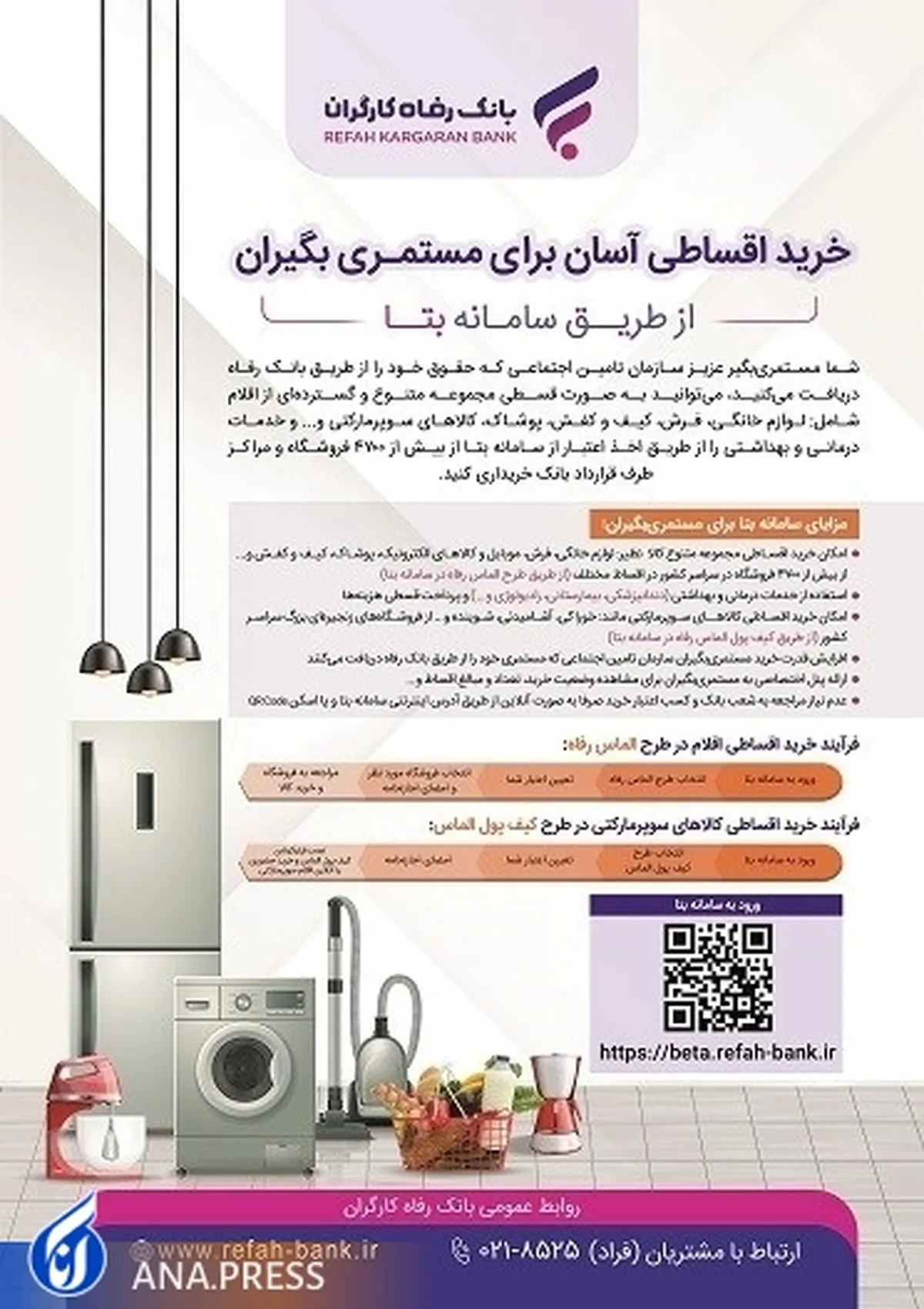 خرید اقساطی آسان برای مستمریبگیران از طریق "سامانه بتا" بانک رفاه کارگران