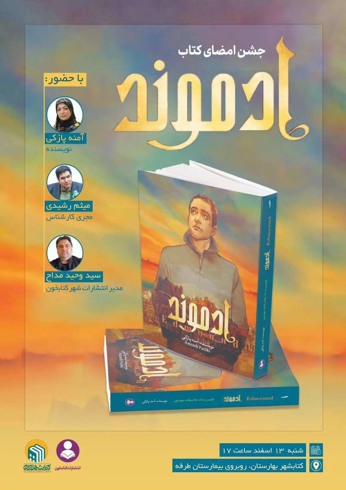 در این مراسم که آمنه پازکی نویسنده کتاب ادموند و جمعی از اهالی کتاب حضور دارند، علاقمندان نیز میتوانند جهت حضور در مراسم جشن امضای این کتاب به کتابشهر ایران شعبه بهارستان روبروی بیمارستان طرفه مراجعه نمایند.
