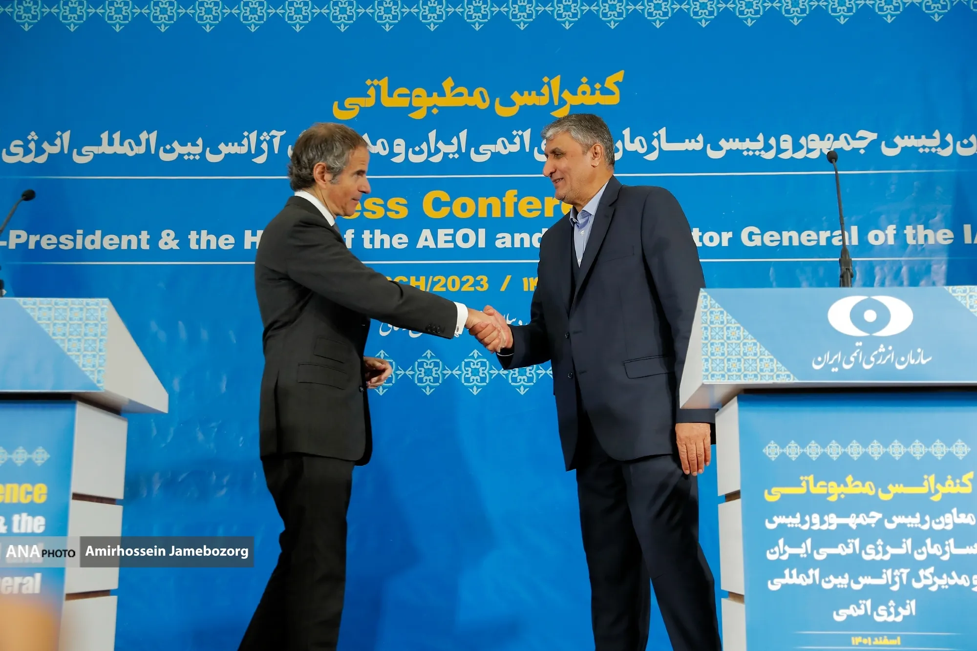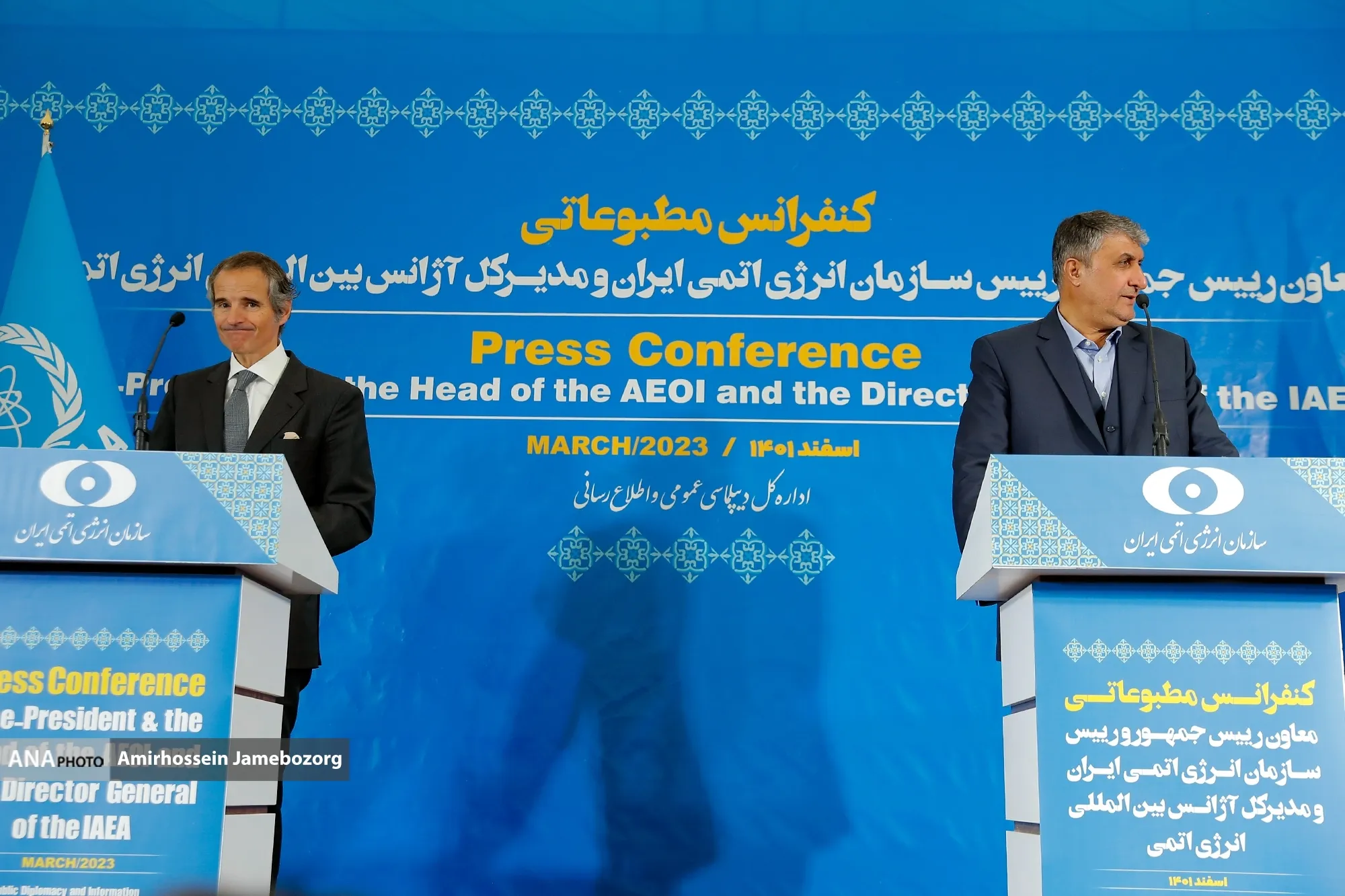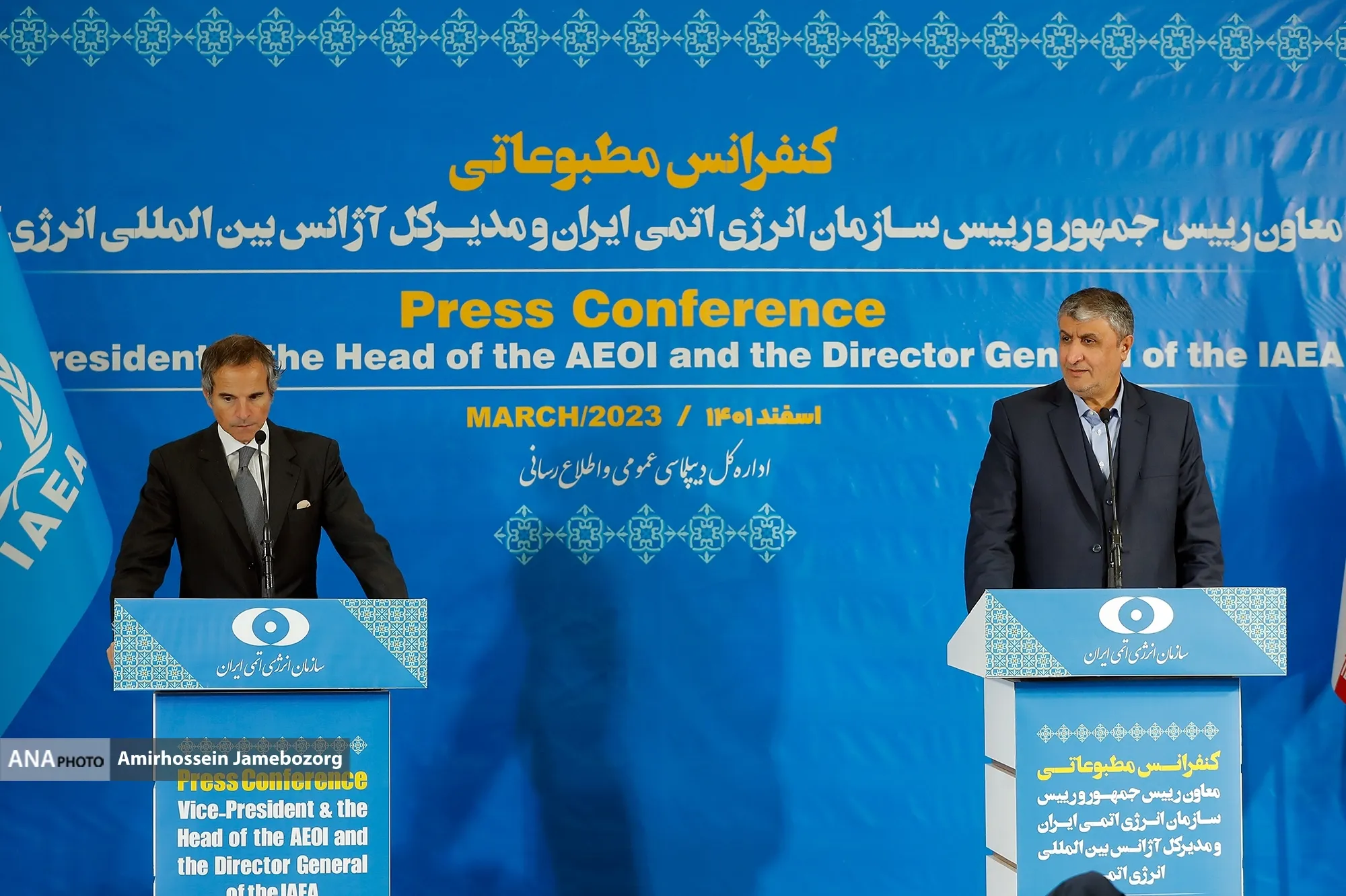 رافائل گروسی مدیرکل آژانس بین‌المللی انرژی اتمی صبح امروز ضمن دیدار و مذاکره با محمد اسلامی رئیس سازمان انرژی اتمی ایران، در کنفرانس مطبوعاتی مشترک به سوالات خبرنگاران پاسخ دادند.