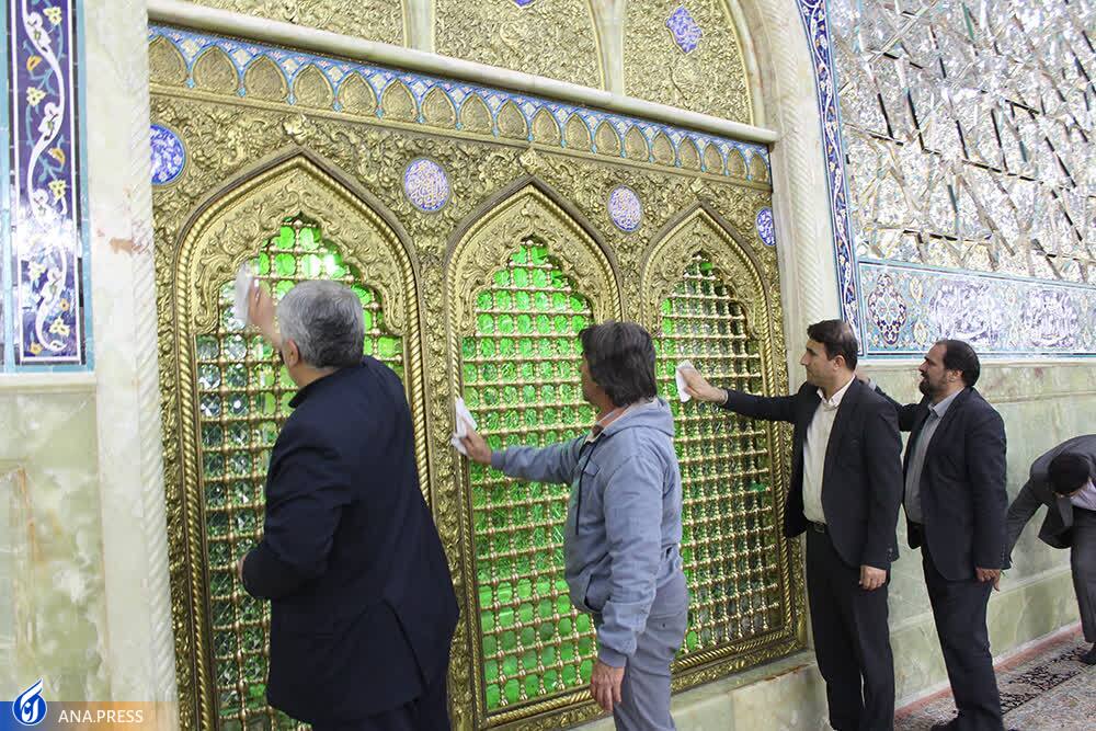 غبارروبی حرم مطهر کریمه اهل بیت با حضور دانشگاهیان دانشگاه آزاد