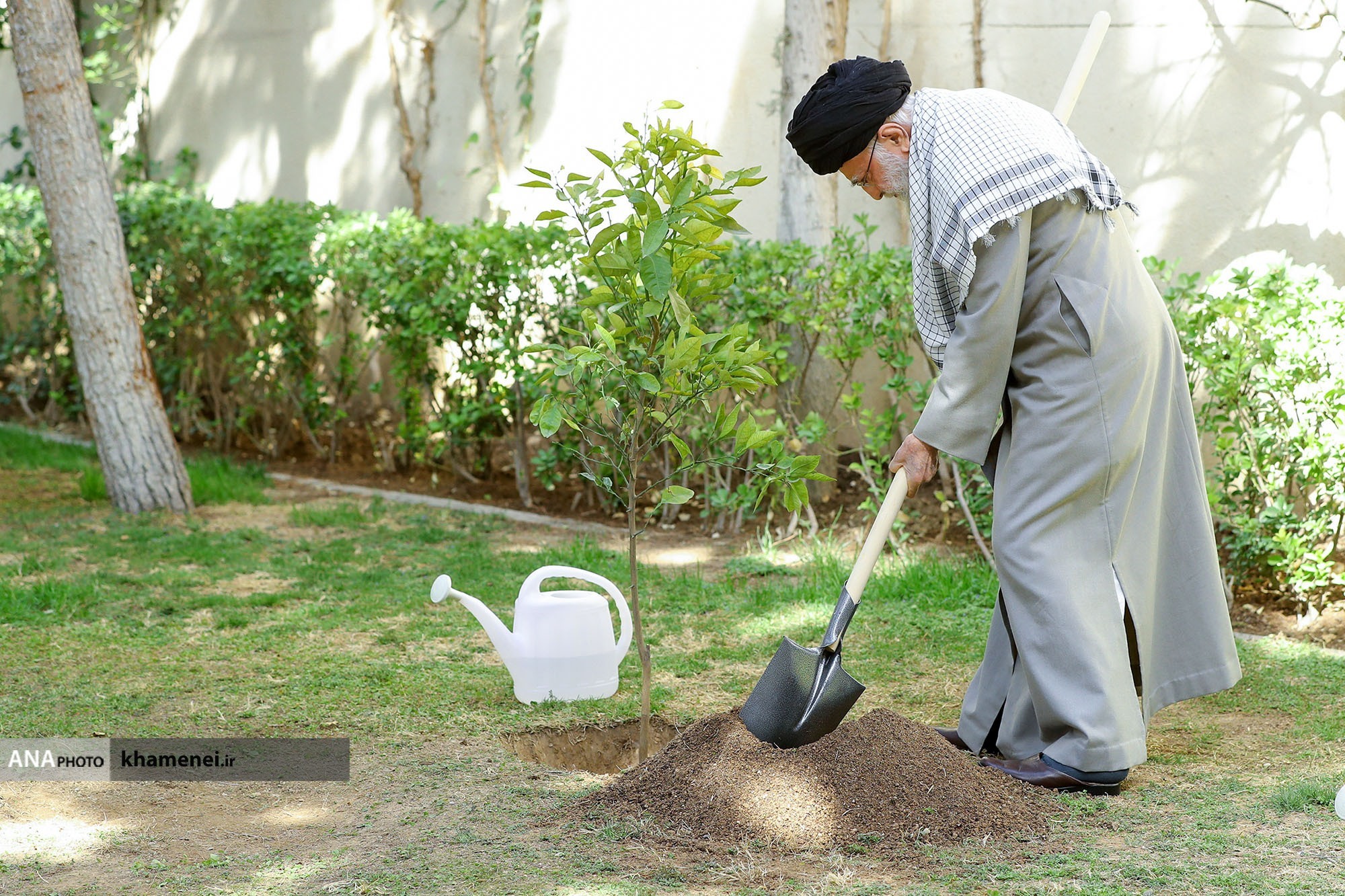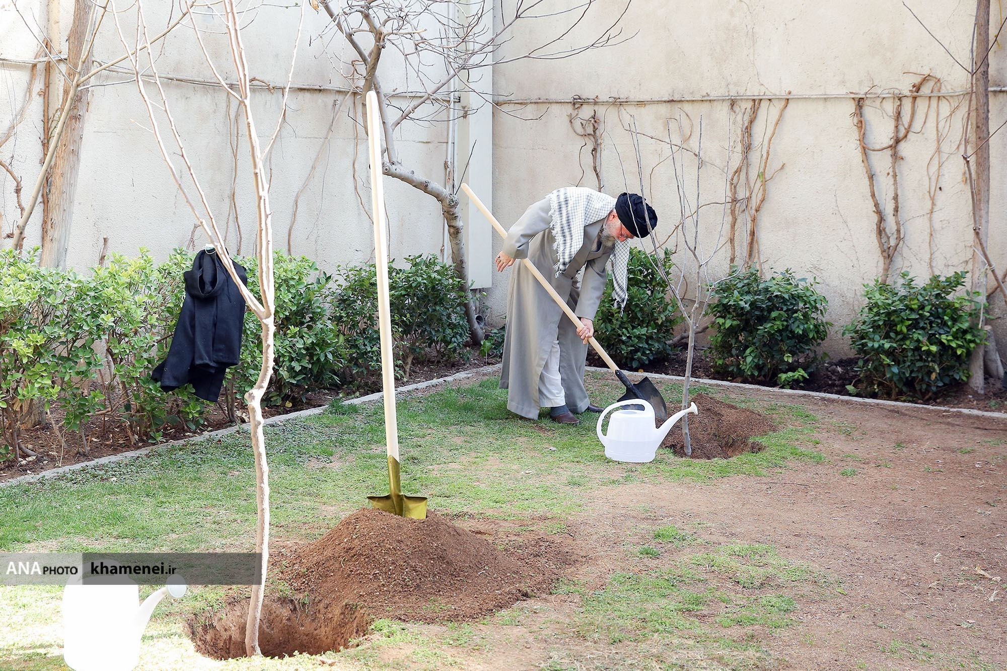 به‌مناسبت روز درختکاری، حضرت آیت‌الله خامنه‌ای رهبر معظم انقلاب پیش از ظهر امروز در محوطه‌ی دفتر رهبری نهال کاشتند.