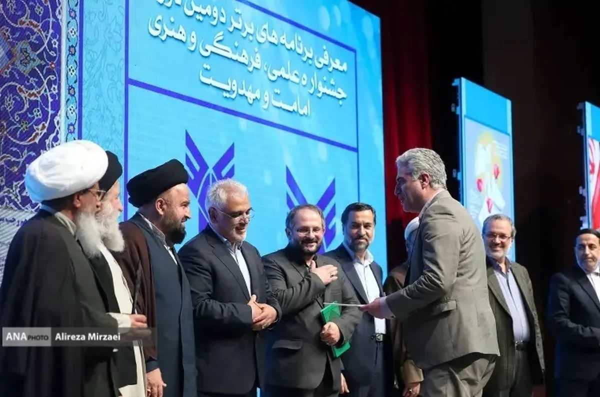 به گزارش گروه دانش و فناوری خبرگزاری آنا، آیین اختتامیه دومین جشنواره علمی، فرهنگی هنری «امامت و مهدویت» دانشگاه آزاد اسلامی روز گذشته (یکشنبه ۱۴ اسفند) با حضور دکتر محمدمهدی طهرانچی رئیس دانشگاه آزاد اسلامی، آیتالله سید محمد سعیدی تولیت حرم فاطمه معصومه، نماینده ولی فقیه در استان قم و امام جمعه شهر قم، دکتر علی سروری مجد مشاور ریاست و رئیس مرکز حوزه ریاست، روابط عمومی و هماهنگی استانها، دکتر فرزاد جهانبین معاون فرهنگی و دانشجویی، دکتر محمد علیاکبری معاون علوم، مهندسی و کشاورزی، جمعی از علما و مسئولان قم و روسا و معاونان فرهنگی و دانشجویی دانشگاه آزاد اسلامی مراکز استانها و مدیران سازمان مرکزی در تالار فرهنگ و هنر استان قم برگزار شد.