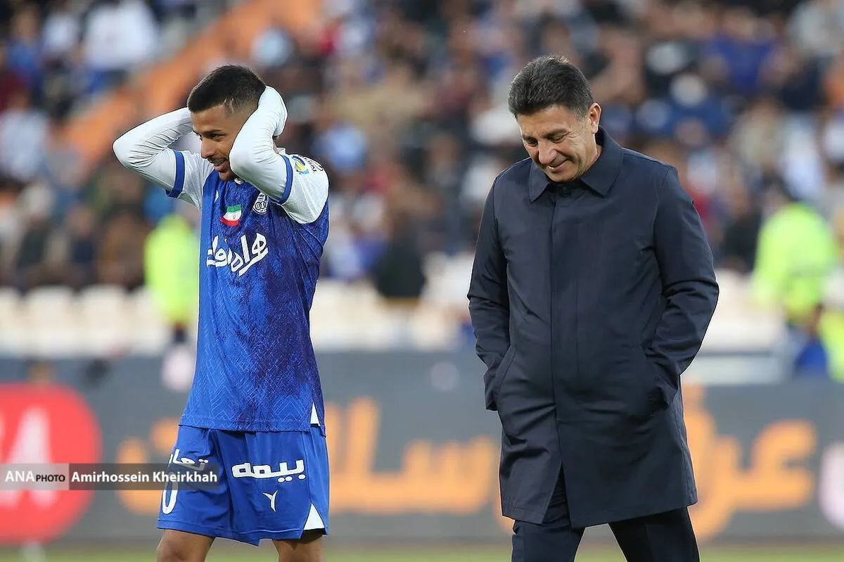 بعد از سوت پایان نیمه اول بازی استقلال و گل گهر سرمربی استقلال و مهاجم آبی پوشان برای دقایقی به خوش و بش با هم پرداختند که سوژه عکاسی شدند.