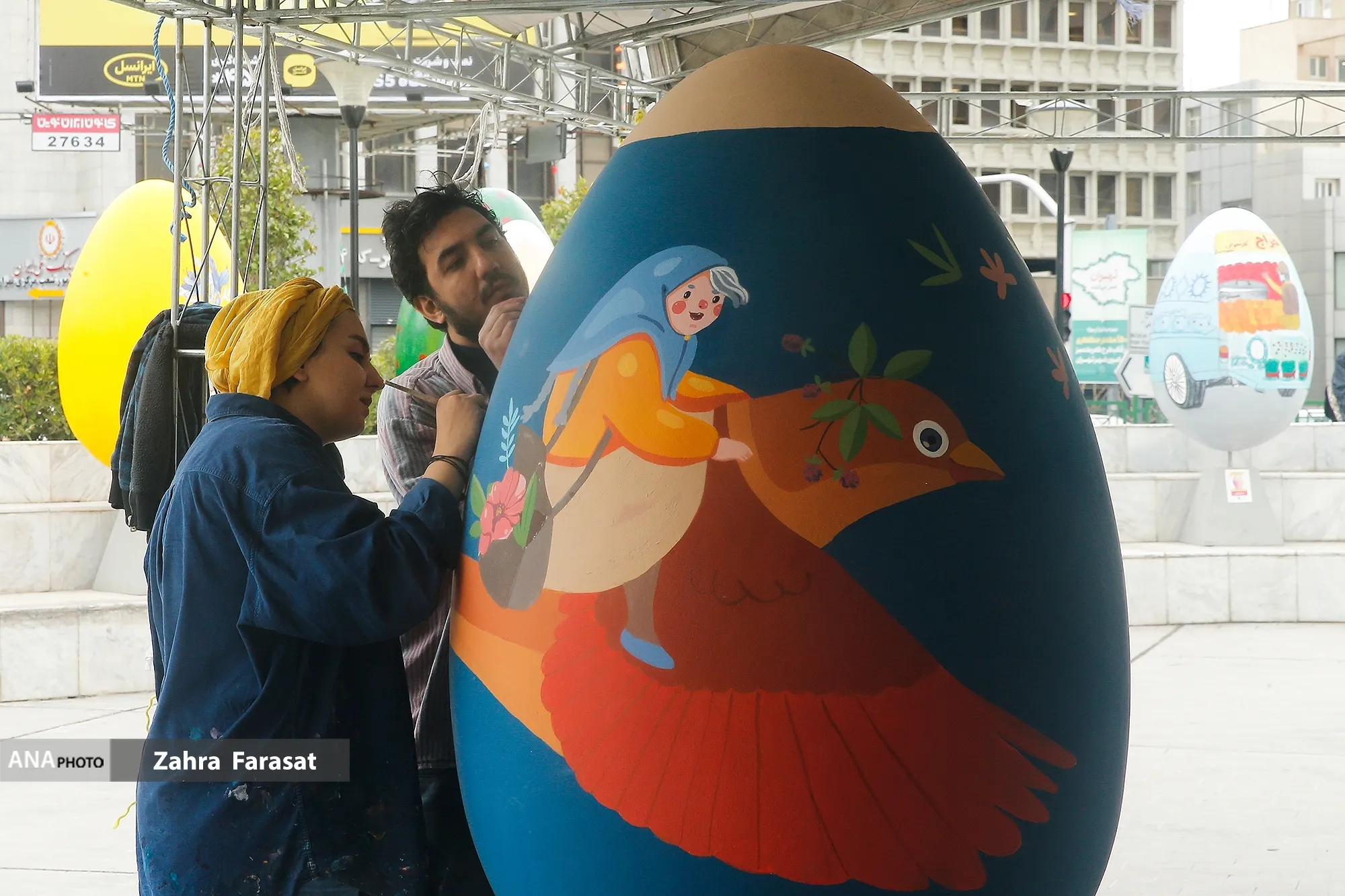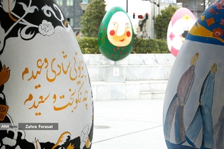 المان تخممرغهای رنگی نوروز همه ساله در آستانه سال نو، با هدف نمایش نمادهای فرهنگی و هنری در فضای شهری و ایجاد شور و نشاط در میان مردم توسط هنرمندان آماده و ساخته می شود.