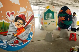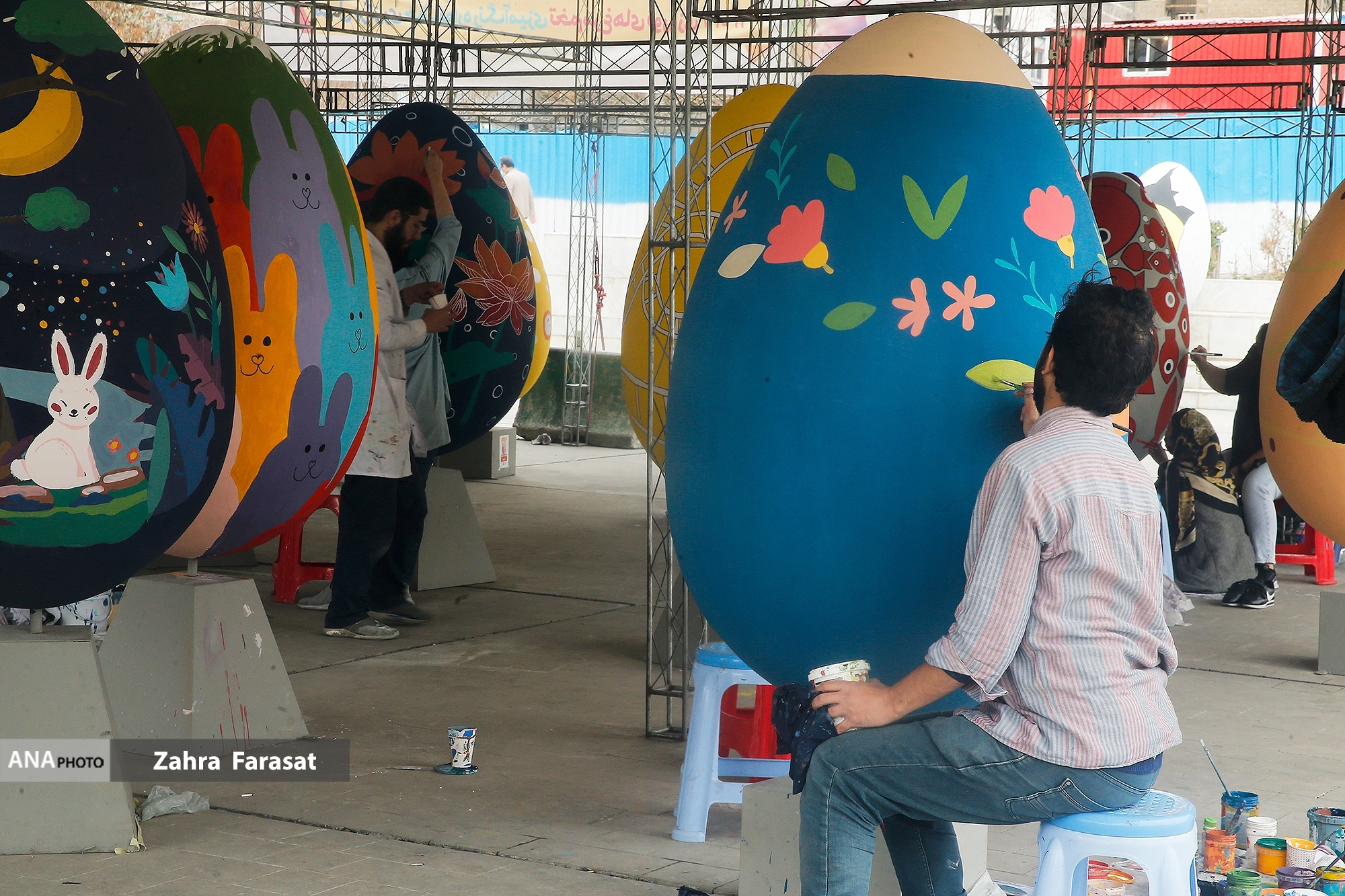 المان تخم‌مرغ‌های رنگی نوروز همه ساله در آستانه سال نو، با هدف نمایش نمادهای فرهنگی و هنری در فضای شهری و ایجاد شور و نشاط در میان مردم توسط هنرمندان آماده و ساخته می شود.