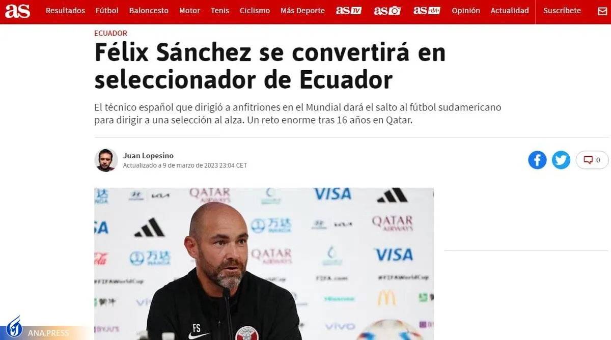 به گزارش خبرگزاری آنا و به نقل از آس، یوهانا کالدرون، روزنامه نگار اعلام کرد، فیلیکس سانچز در مورد همه چیز برای هدایت تیم اکوادور به توافق رسیده است. سرمربی ۴۷ ساله اسپانیایی که در جام جهانی هدایت قطر را بر عهده داشت اکنون چالشی را آغاز خواهد کرد.
