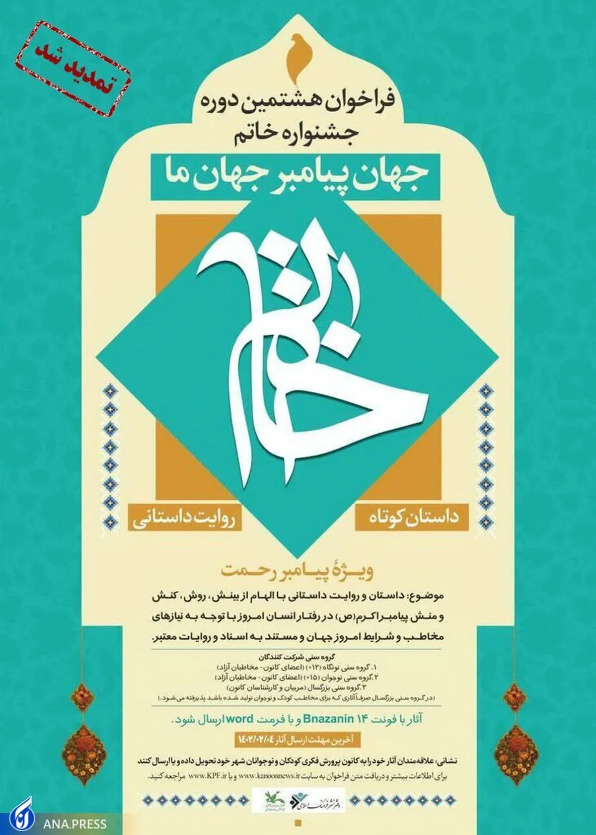 فراخوان هشتمین جشنواره داستان کوتاه خاتم تمدید شد