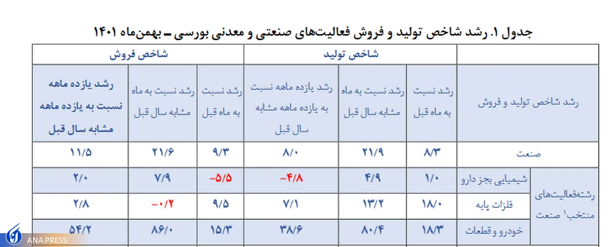 شاخص تولید صنایع بورسی در بهمن 21.9 درصد رشد کرد