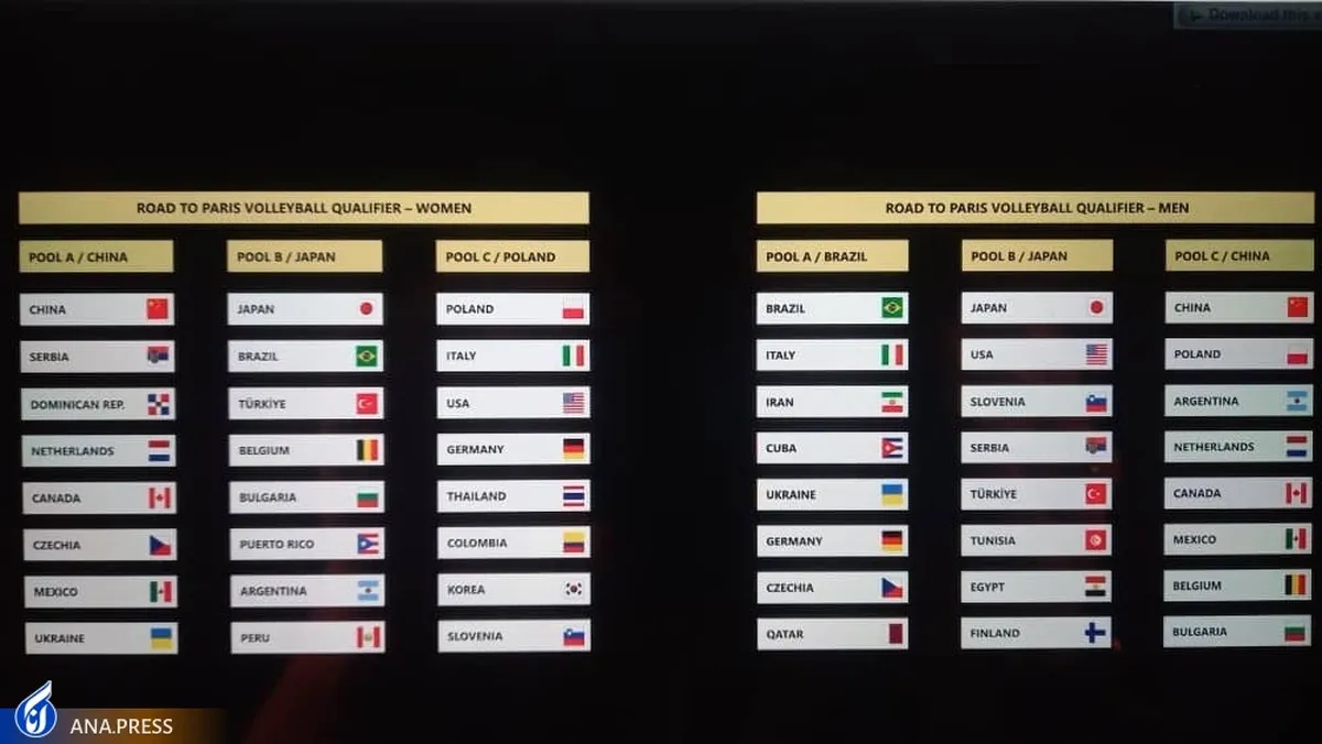 مردان والیبال ایران در راه صعود به پاریس در گروه مرگ قرار گرفتند