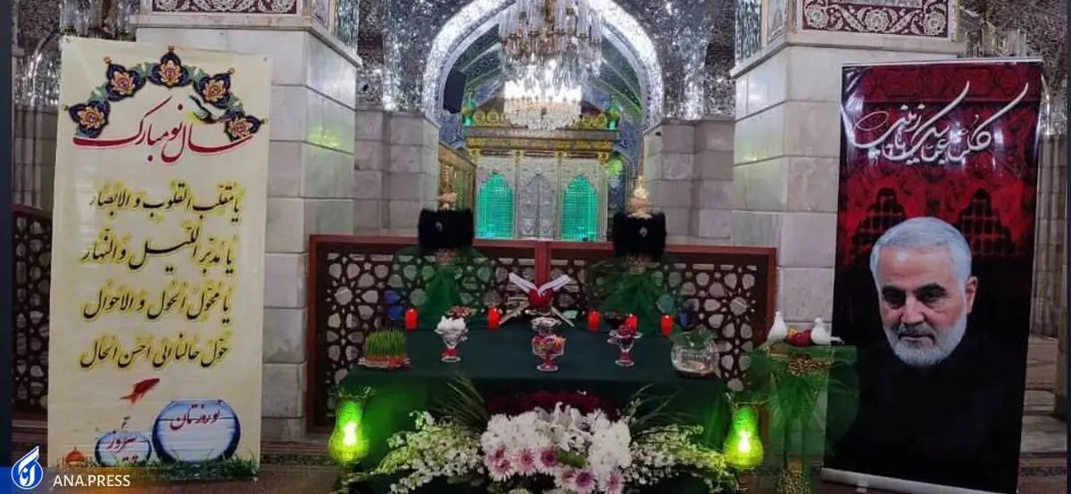 سفره هفت سین در حرم حضرت رقیه (س) توسط خادمان این آستان پهن شد و در کنار آن عکسی از حاج قاسم به یاد شهدای مقاومت قرار گرفت.