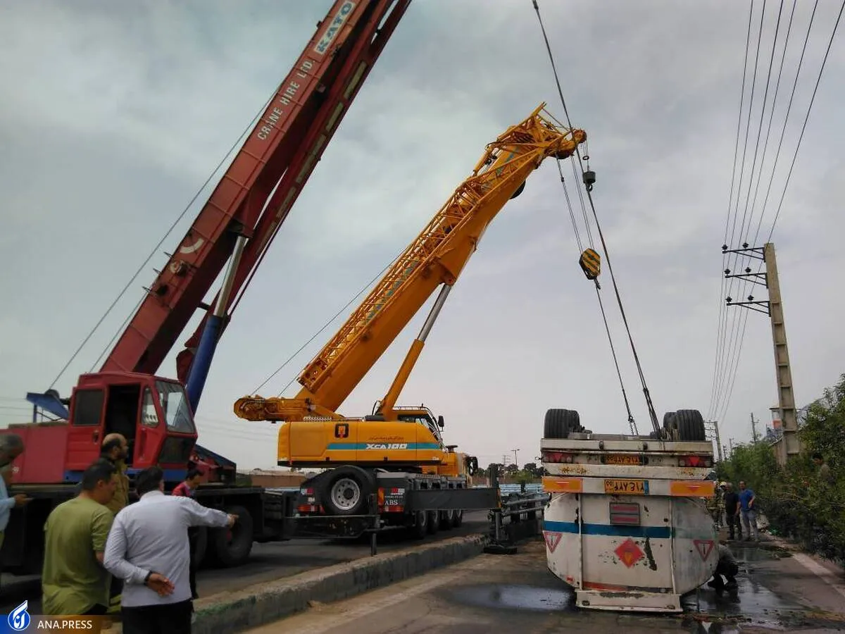 واژگونی تانکر ۲۵ هزار لیتری در بزرگراه فتح