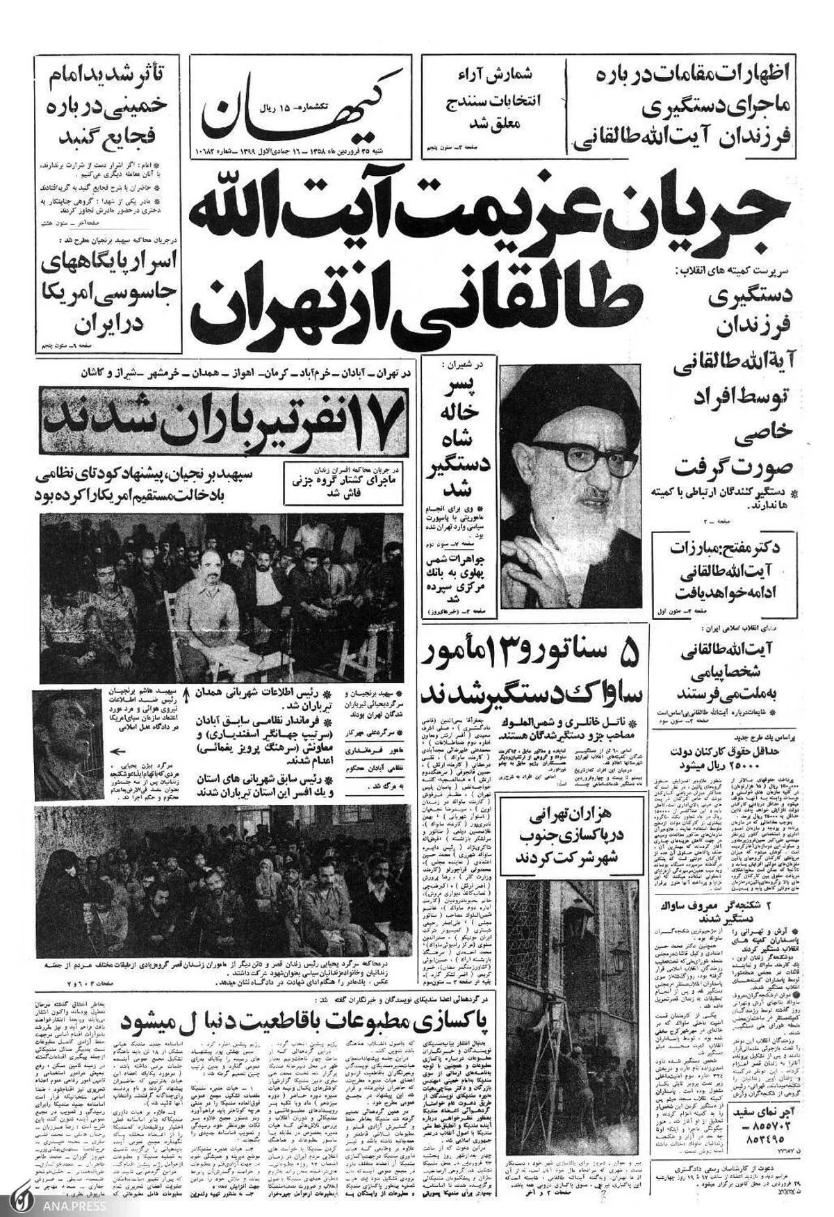 به گزارش خبرنگار علم و فناوری خبرگزاری آنا، در ۲۵ فروردین ۱۳۵۸ رویدادهای گوناگونی رخ داده است از جمله اینکه دولت موقت به آمریکا و انگلیس اعلام کرده است کلیه قراردادهای خرید سلاح از این کشورها را لغو میکند. این تصمیم دولت موقت بعدا در جنگ ایران و عراق موجب خسران به کشور شد. چون پس از تصمیم دولت موقت دولت آمریکا اظهار تمایل کرده است که ۷۸ جنگنده اف ۱۴ و موشکهای پیچیده فونیکس را که به تجهیزات بسیار پیچیده و سری الکترونیک مجهز بوده و قبلا به ایران فروخته شده اند را بازخرید کند. اما دستگیری فرزندان آیت الله طالقانی همه حوادث و وقایع کشور را تحت الشعاع خود قرار داده است، ابوالحسن و مجتبی طالقانی که پنج شنبه گذشته (۲۳ فروردین) توسط پاسداران انقلاب دستیگر شده بودند روز جمعه آزاد شدند