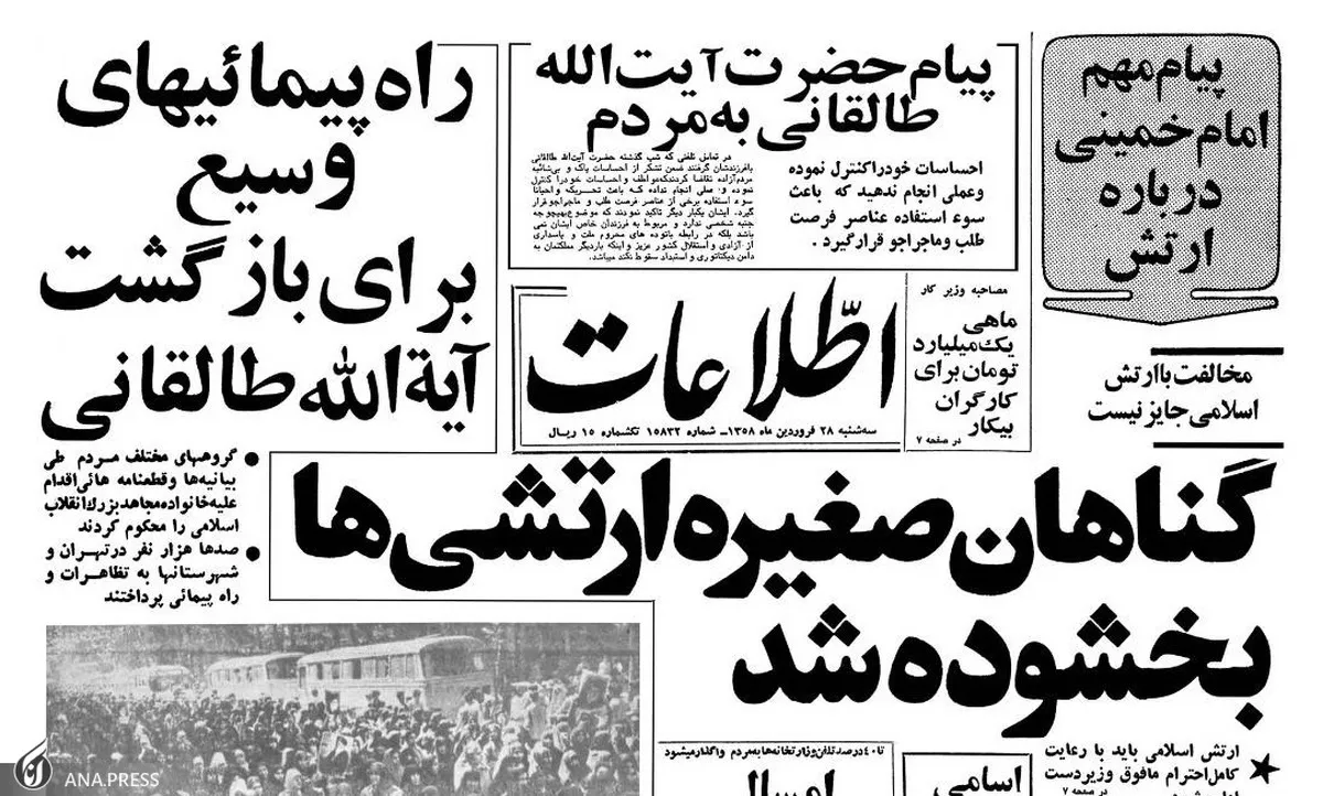 آیت الله طالقانی در پیامی با تشکر ازمردم از آنان خواست احساسات خود را کنترل کنند. ایشان در این پیام ادامه دادند: از انجام کارهایی که باعث سوء استفاده عناصر فرصت طلب و ماجراجو قرار گیرد خودداری کنید.