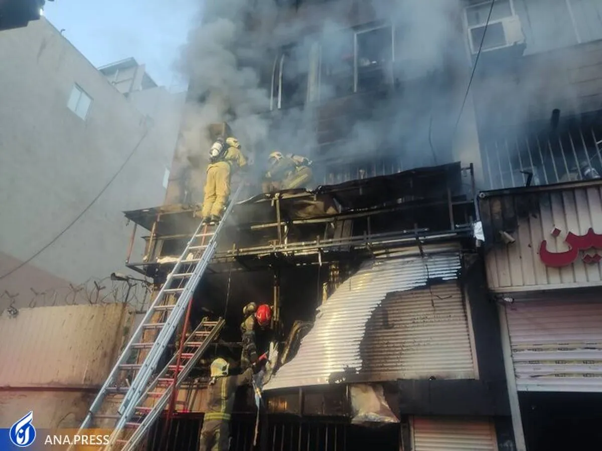 پاساژ قدیمی بازار تهران طعمه حریق شد+فیلم و عکس