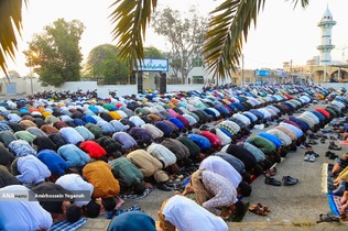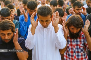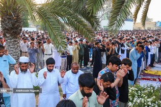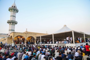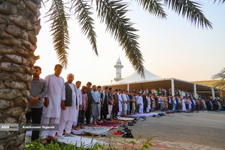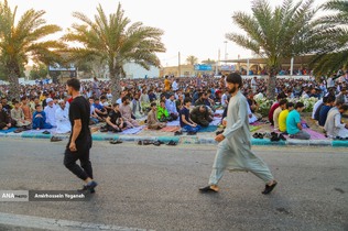 مراسم نماز عید سعید فطر با حضور نمازگزاران اهل تسنن در جزیره کیش برگزار شد.