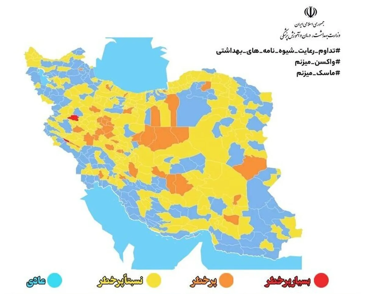 همچنین تعداد شهرهای با وضعیت زرد از ۲۷۰ به ۲۳۵ و تعداد شهرهای با وضعیت آبی از ۱۰۵ به ۱۷۰ شهر رسید.