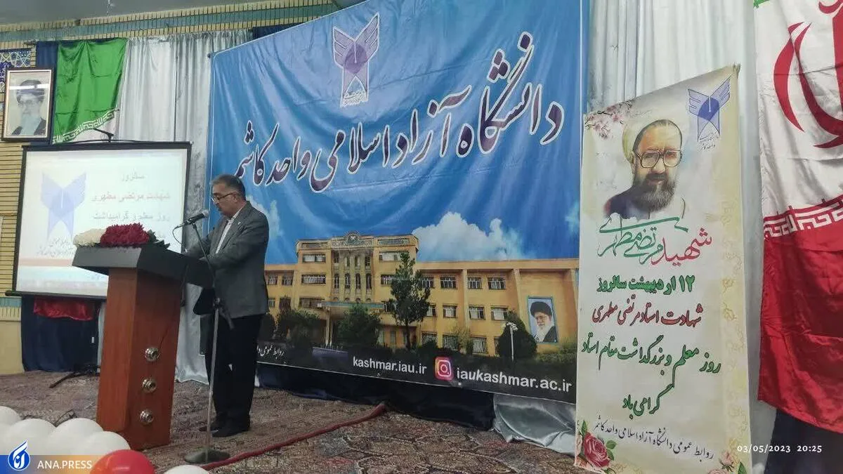 رئیس دانشگاه آزاد اسلامی واحد کاشمر در این مراسم گفت: معلم یعنی کسی که در دل انسان چراغی روشن میکند و او را از جهالت به دانایی و معرفت رهنمون میکند که نمونه بارز آن را میتوان اندیشه استاد مطهری، آثار و کتابهای ایشان دانست.