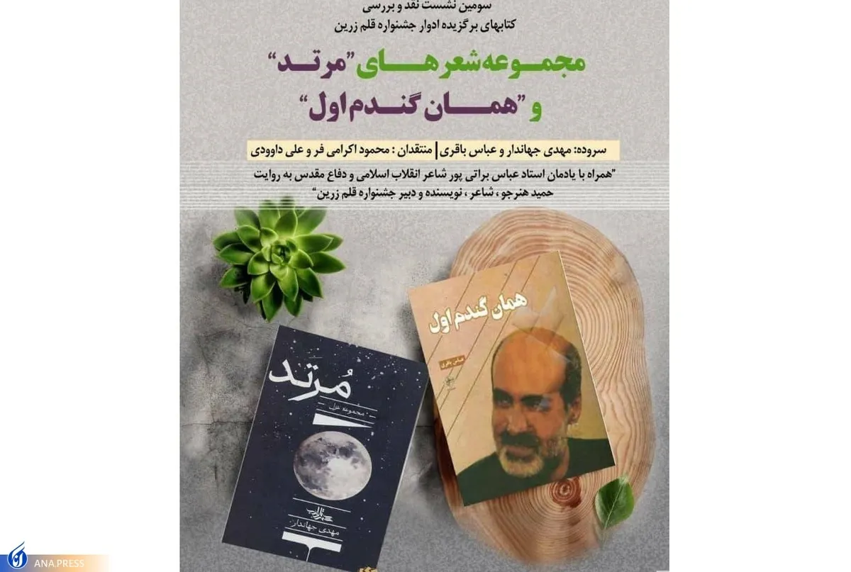 به گزارش گروه فرهنگ خبرگزاری علم و فناوری آنا، در سومین نشست نقد و بررسی کتابهای ادوار گذشته جایزه ادبی قلم زرین، دو مجموعه شعر «مرتد» سروده مهدی جهاندار و «همان گندم اول» سروده عباس باقری بررسی و ارزیابی خواهد شد.