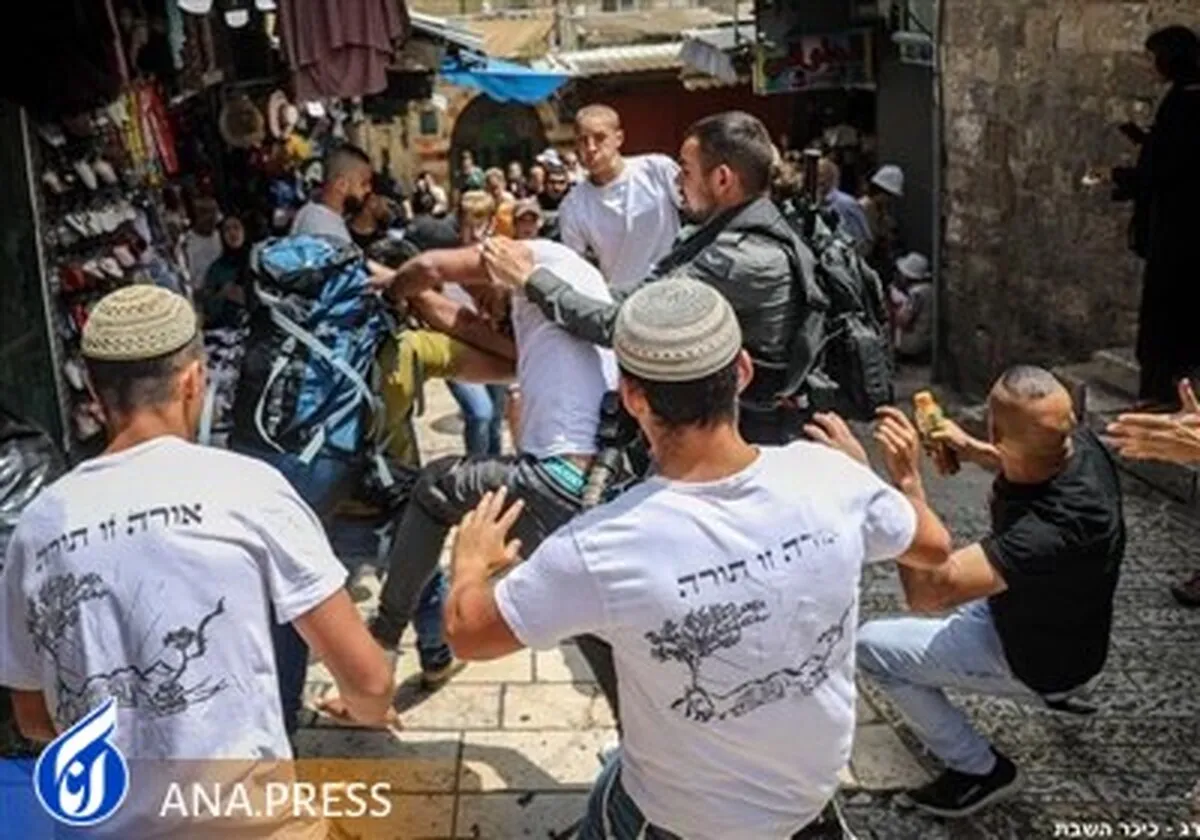 حمله نظامیان و شهرک نشینان صهیونیست به فلسطینیان در مسیر راهپیمایی پرچم