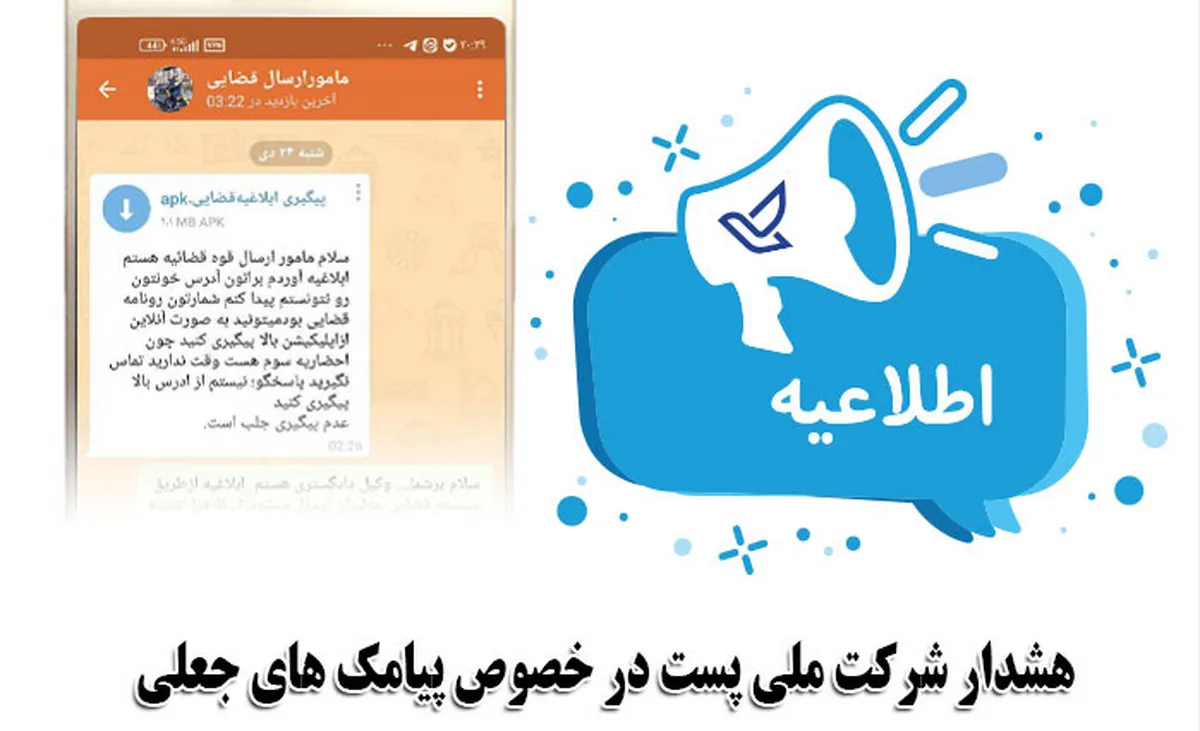 شرکت ملی پست اعلام کرد که مأموران شرکت ملی پست هیچگونه پیامکی مبنی بر ارسال ابلاغیه، لینک و یا واریز وجه برای مشتریان ارسال نمیکنند؛ بنابراین در صورت مواجه شدن با این پیامها به هیچ عنوان روی لینکها کلیک نکنید.