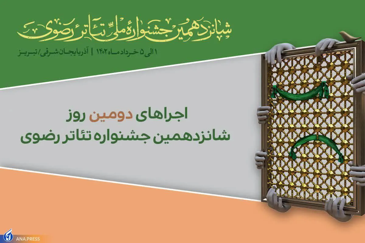 به گزارش گروه فرهنگ خبرگزاری علم و فناوری آنا، شانزدهمین جشنواره ملی تئاتر رضوی به دبیری کوروش زارعی روز سه شنبه ۲ خرداد ۱۴۰۲ دومین روز خود را سپری خواهد کرد.