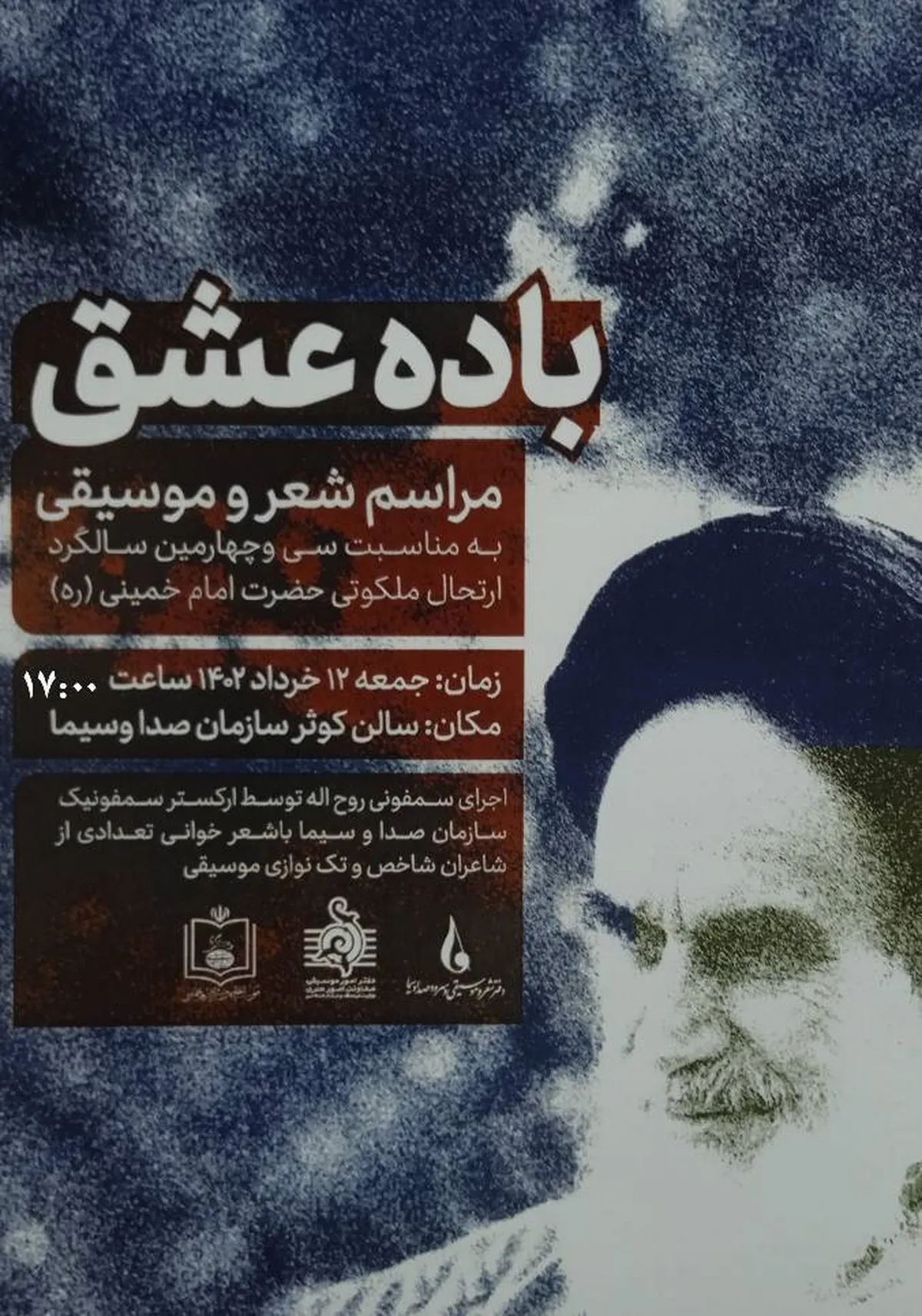 «باده عشق» به مناسبت سی و چهارمین سالگرد ارتحال ملکوتی حضرت امام خمینی (ره) برگزار می شود.