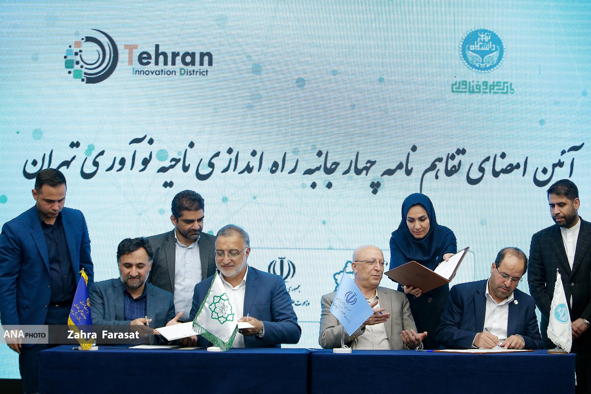 تفاهمنامه چهارجانبه راه اندازی ناحیه نوآوری تهران با حضور محمدعلی زلفی گل وزیر علوم، تحقیقات و فناوری و علیرضا زاکانی شهردار تهران در پارک علم و فناوری به امضا رسید.
