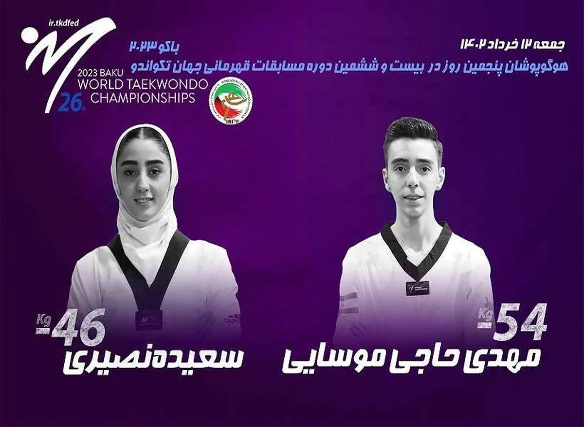 «سعیده نصیری» و «مهدی حاجی موسایی» نمایندگان تیم ملی تکواندو ایران در روز پنجم پیکار‌ها خواهند بود.