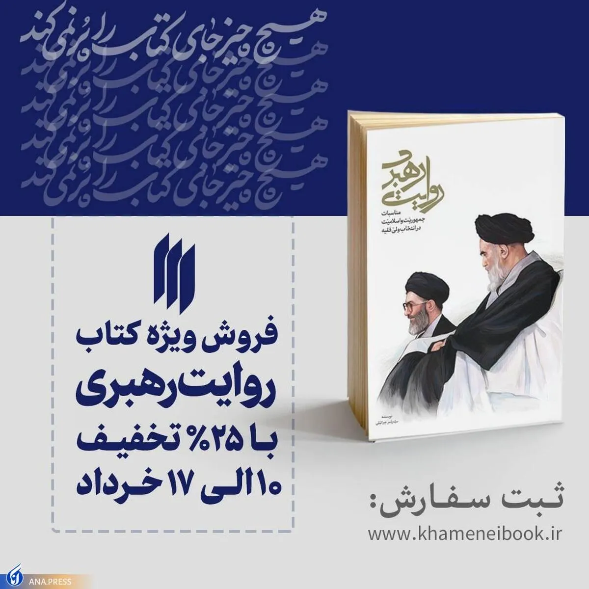 علاقمندان میتوانند این کتاب را تا ۱۷ خرداد ماه با تخفیف ۲۵ درصدی از پایگاه اینترنتی انتشارات انقلاب اسلامی به نشانی www.khameneibook.ir تهیه کنند.