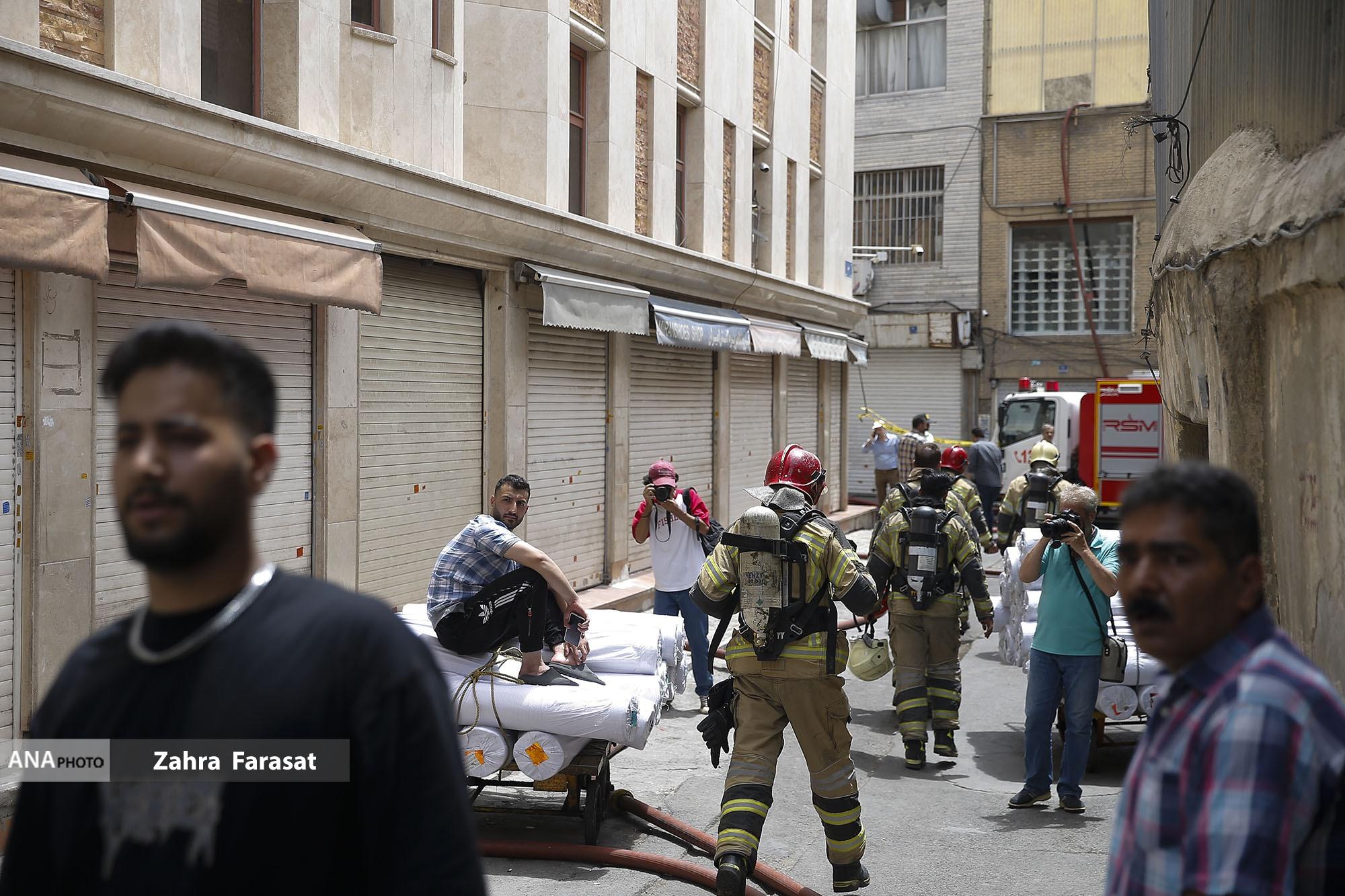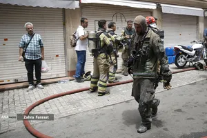 آتش‌سوزی انبار چسب در بازار تهران