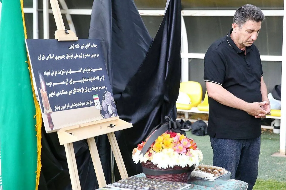 عصر امروز پیش از آغاز تمرین تیم ملی، مراسمی به منظور عرض تسلیت به امیر قلعهنویی برگزار شد.