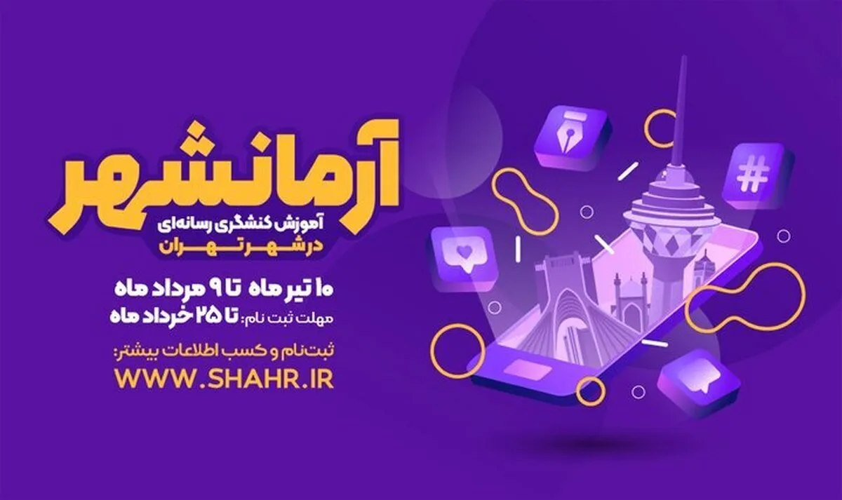 ثبت نام دوره «آرمانشهر»، کنشگری رسانهای در شهر تهران، از ۱۱ خرداد ماه لغایت ۲۵ خرداد ادامه خواهد داشت و علاقهمندان میتوانند از طریق وب سایت SHAHR.IR نسبت به ثبت نام اقدام کنند. زمان برگزاری این رویداد از ۱۰ تیر روزهای شنبه و دوشنبه است و محل برگزاری آن باغ کتاب تهران.