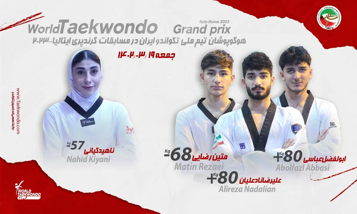 به گزارش خبرگزاری علم و فناوری آنا و به نقل از روابط عمومی فدراسیون تکواندو، نخستین مرحله از رقابتهای گرندپری در سال ۲۰۲۳ از فردا (جمعه) با برگزاری مبارزات اوزان ۵۷- کیلوگرم بانوان، ۶۸- و ۸۰+ کیلوگرم آقایان در شهر «رم» کشور ایتالیا آغاز میشود که «ناهید کیانی، متین رضایی، ابوالفضل عباسی و علیرضا نادعلیان» نمایندگان ایران خواهند بود.