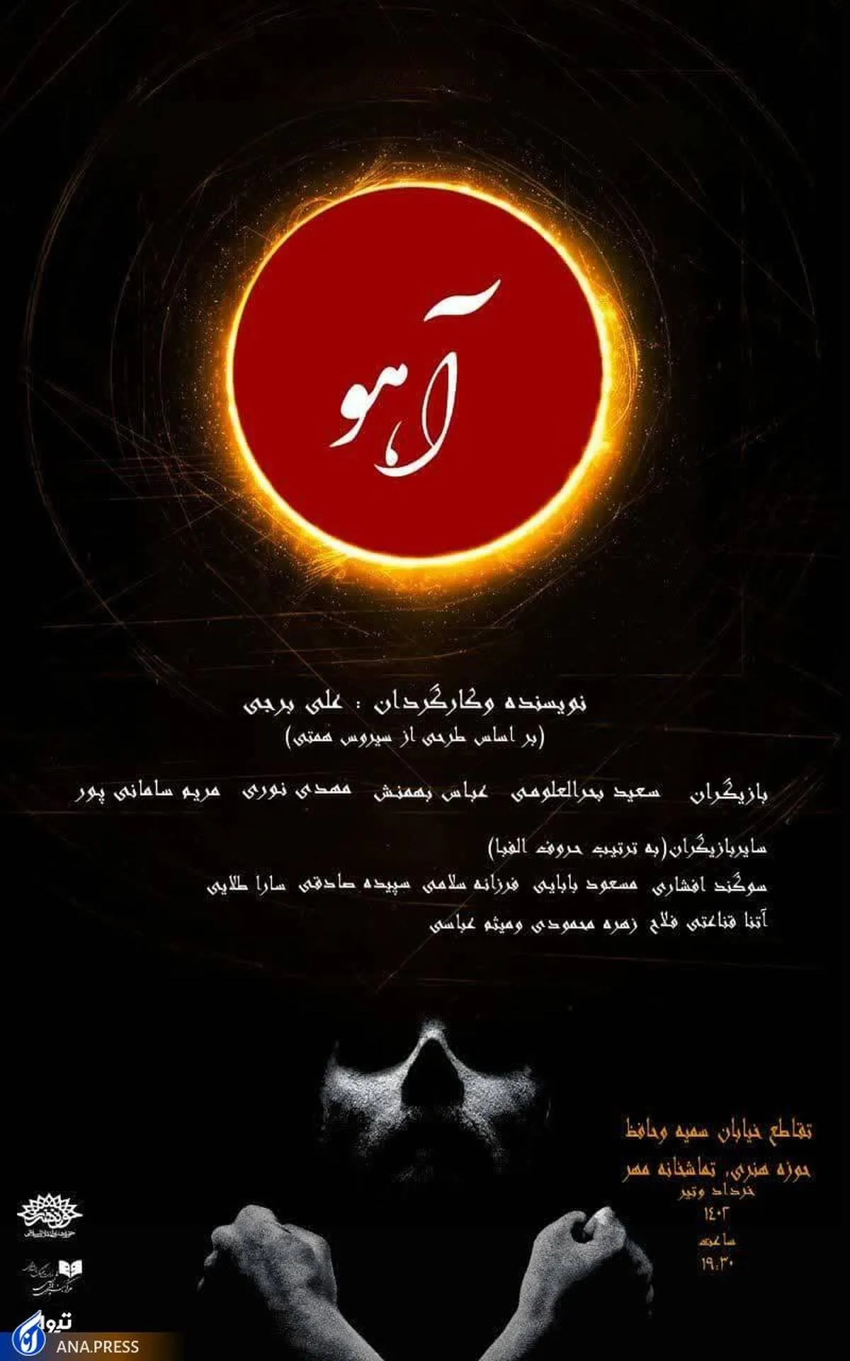 نمایش «آهو» به کارگردانی و نویسندگی علی برجی از ۲۴ خرداد هر شب از ساعت ۱۹:۳۰ در تماشاخانه مهر به نشانی تقاطع خیابان حافظ و سمیه روی صحنه خواهد رفت. علاقهمندان برای تهیه بلیت و تماشای این نمایش میتوانند به سایت تیوال مراجعه کنند.