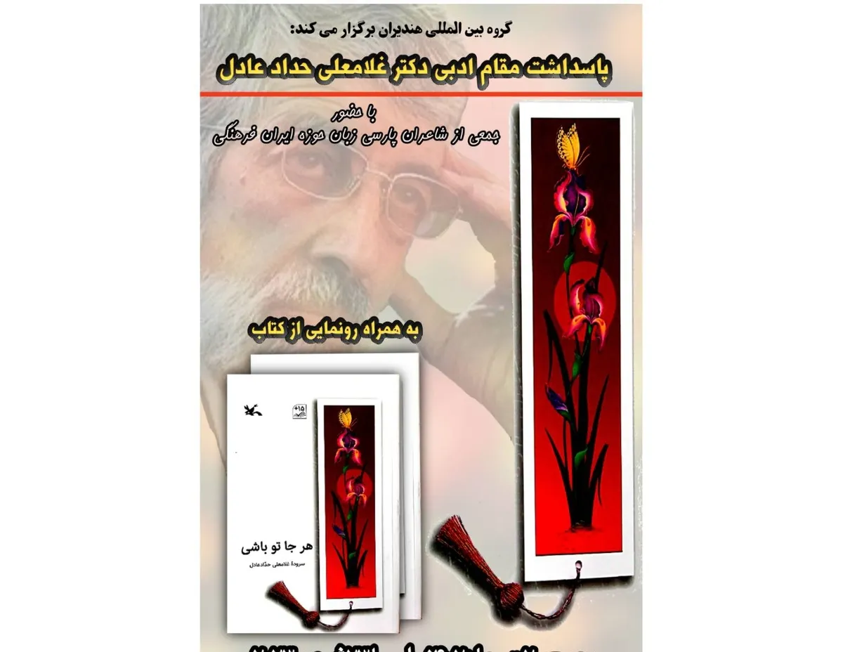 به گزارش خبرنگار فرهنگ و جامعه خبرگزاری علم و فناوری آنا، آیین تجلیل از غلامعلی حداد عادل و رونمایی از کتاب «هر جا تو باشی» جمعه دوم تیر ماه به همت گروه بین‌المللی هندیران برگزار می‌شود.