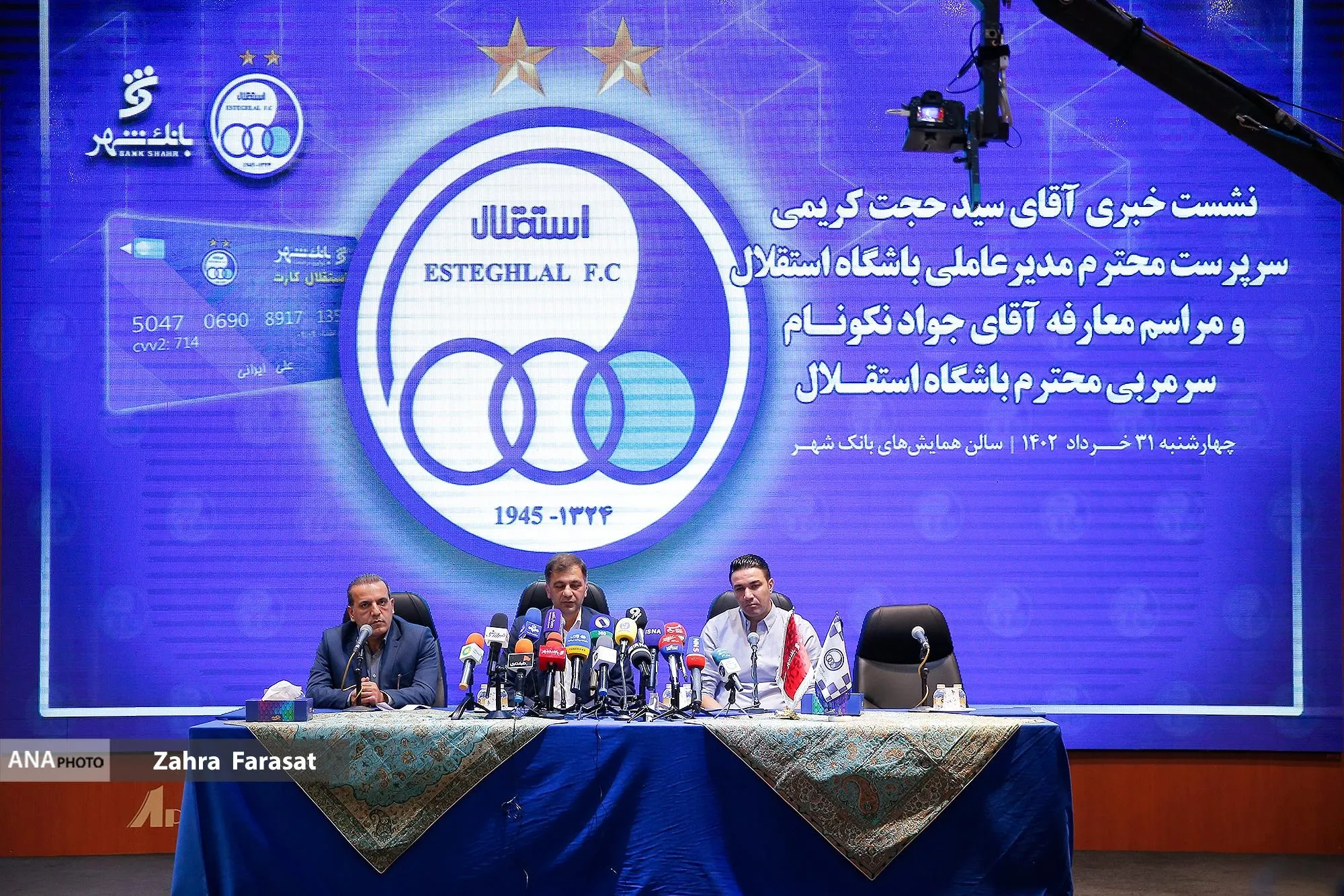 مراسم معارفه و نشست خبری «جواد نکونام» به عنوان سرمربی تیم فوتبال استقلال، ظهر امروز با حضور حجت کریمی سرپرست باشگاه استقلال برگزار شد.