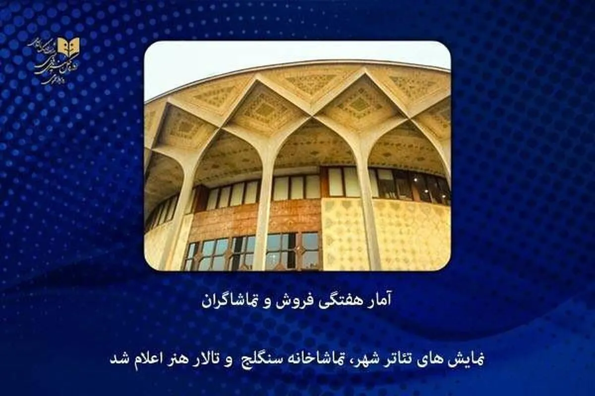 به گزارش گروه فرهنگ و جامعه خبرگزاری علم و فناوری آنا، آمار هفتگی فروش و تماشاگران نمایشهای به صحنه رفته در تالارهای اصلی، چهارسو، قشقایی، سایه و کارگاه نمایش مجموعه تئاتر شهر و همچنین تالار هنر تا پایان روز جمعه دوم تیر ماه ۱۴۰۲ تفکیک اجراها اعلام شد.