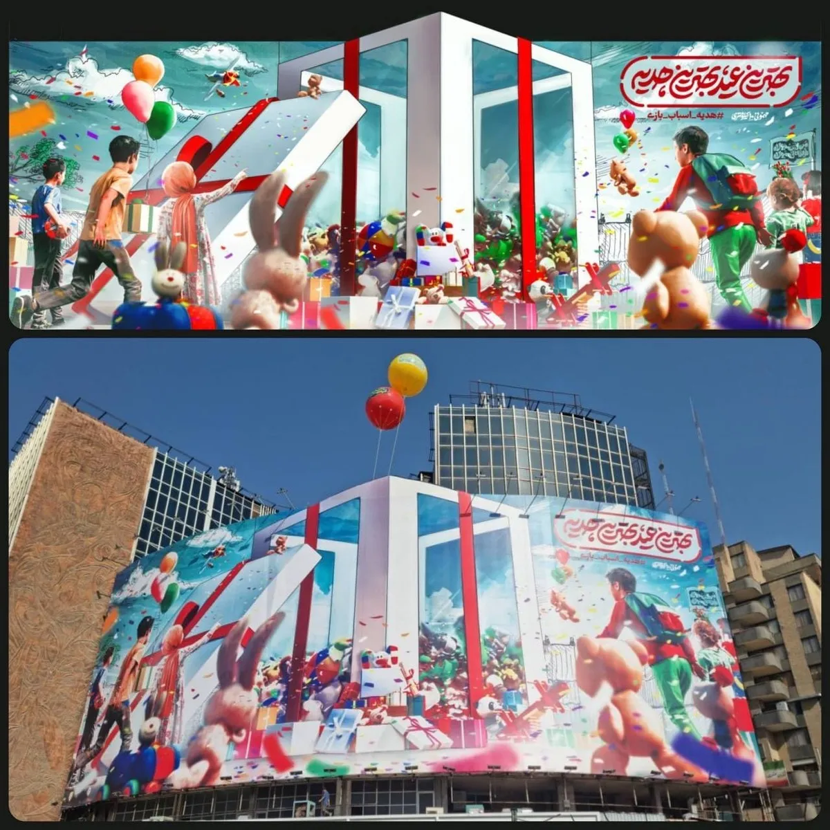 دیوارنگاره میدان ولیعصر(عج) با شعار «بهترین عید، بهترین هدیه» رونمایی شد