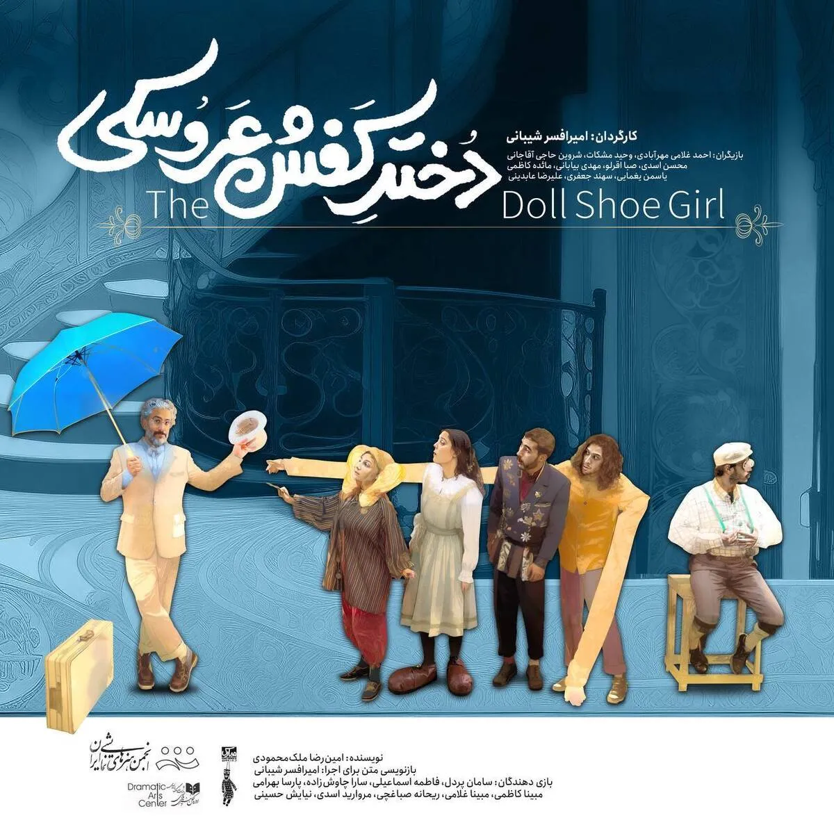 در این نمایش عروسکهای میلهای و تاپتیبل، ماسکهای تخیلی، قطعهسازی و دفرماسیون اندامها در شکل و شیوه اجرا به خدمت گرفته شدهاند. بازیگران این نمایش، احمد غلامی مهرآبادی، وحید مشکات، شروین حاجی آقاجانی، محسن اسدی، صبا اقرلو، مهدی بیابانی، مائده کاظمی، یاسمن یغمایی، سهند جعفری، علیرضا عابدینی پور هستند.