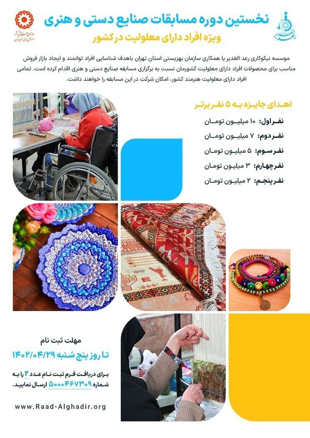 فراخوان «نخستین دورۀ مسابقات صنایع دستی و هنری ویژه افراد دارای معلولیت در کشور» منتشر شد