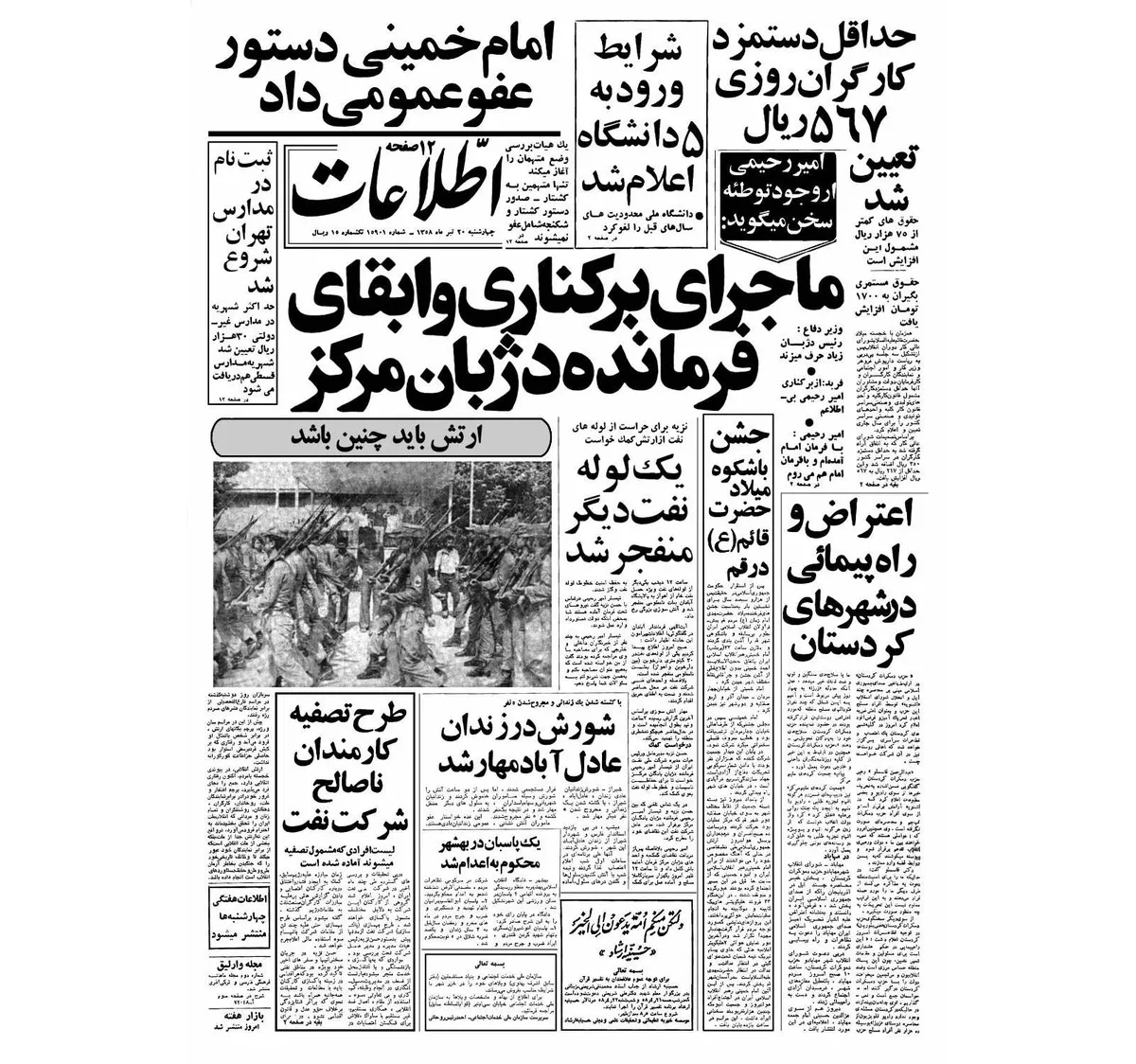 ۲۰ تیر ۱۳۵۸ رویداد‌های گوناگونی از جمله عزل و ابقای فرمانده دژبان مرکز، تکذیب حمله عراق به روستا‌های ایران، دعوت قاسملو به آشوب در شهر‌های کردستان، درخواست شهروندان مکزیک برای اخراج شاه مخلوع رخ داده است.