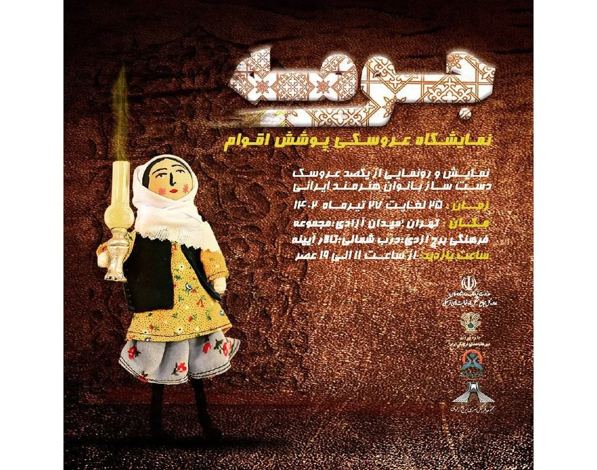 نمایشگاه عروسکی پوشش اقوام «جومه» روز یکشنبه ۲۵ تیر در تالار آیینه برج آزادی افتتاح میشود.