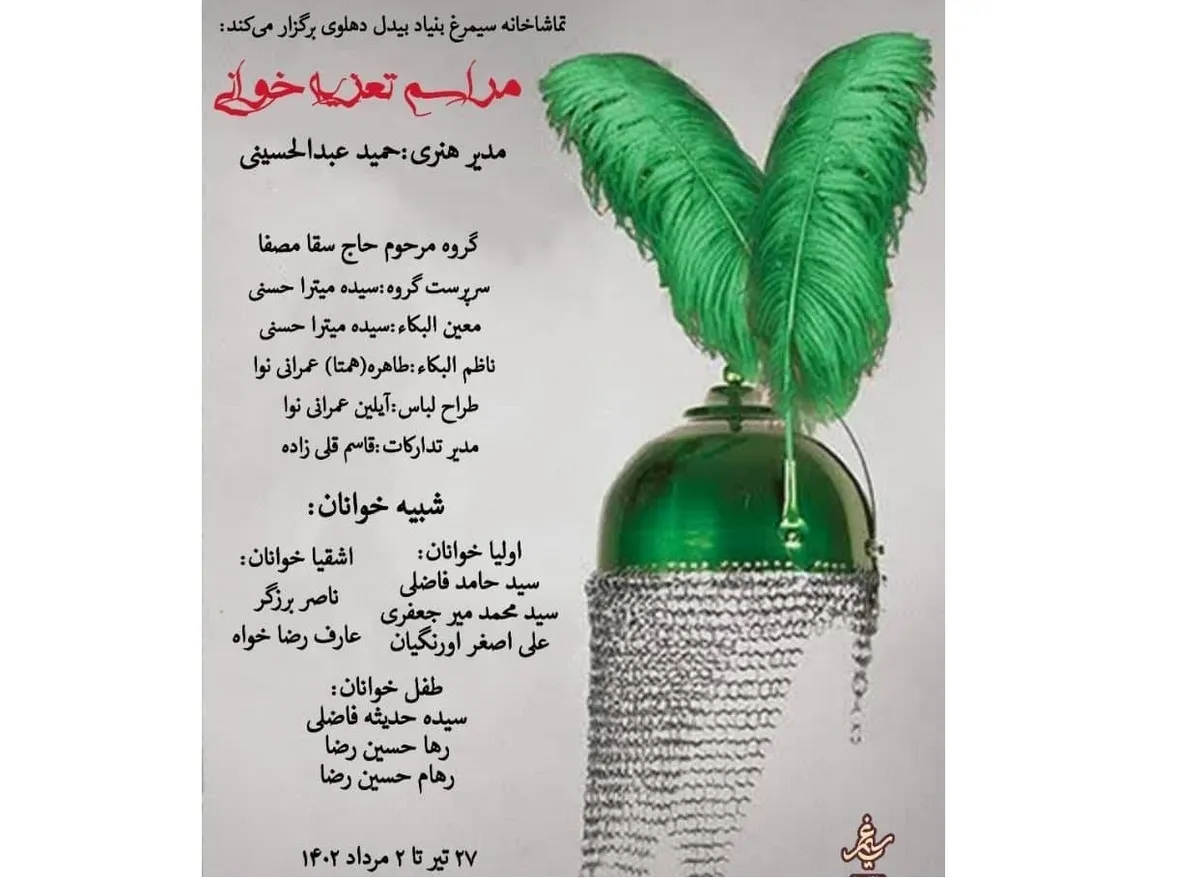 همزمان با ایام ماه محرم و عزاداری امام حسین (ع) تماشاخانه سیمرغ بنیاد بیدل دهلوی به مناسبت مجالس تعزیه برگزار می‌کند.