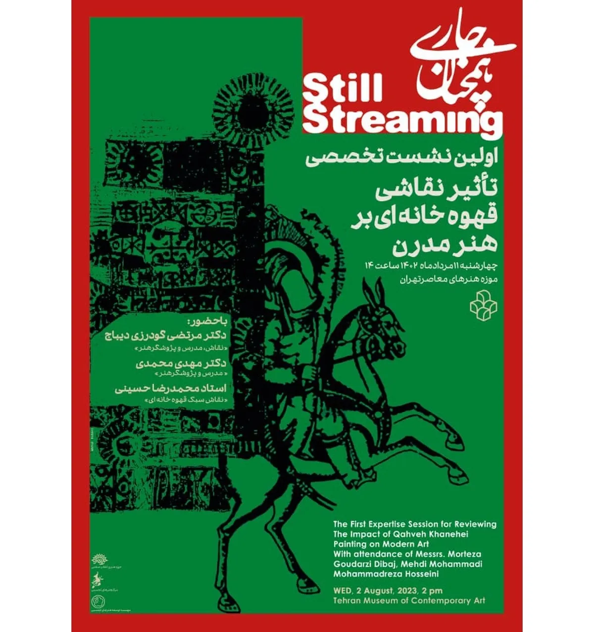 اولین نشست تخصصی تاثیر نقاشی قهوهخانهای بر هنر مدرن از سلسله نشستهای تخصصی نمایشگاه «همچنان جاری»، چهارشنبه ۱۱ مرداد ماه در موزه هنرهای معاصر تهران برگزار میشود.