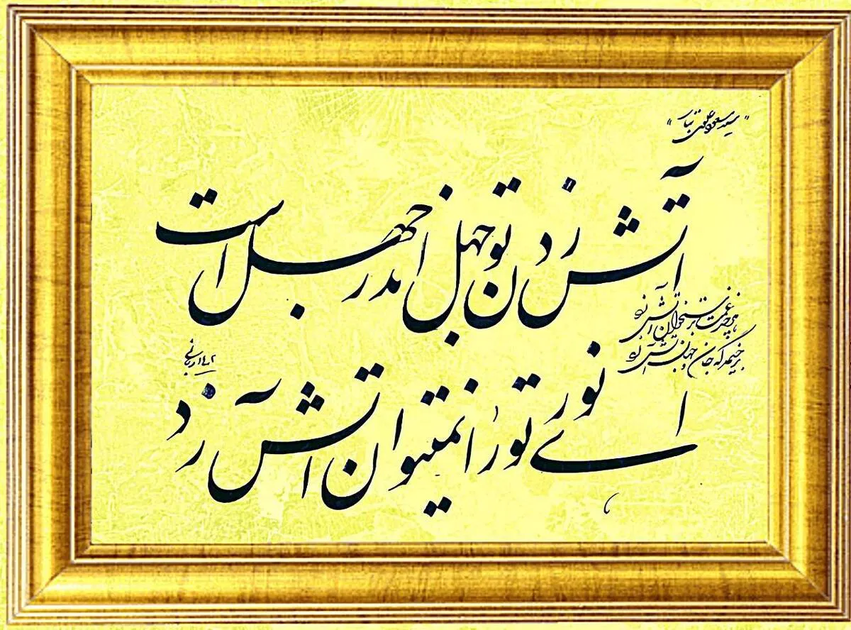 «به نام خدا یُرِیدُونَ أَنْ یُطْفِئُوا نُورَ اللَّهِ بِأَفْوَاهِهِمْ وَیَأْبَى اللَّهُ إِلَّا أَنْ یُتِمَّ نُورَهُ وَلَوْ کَرِهَ الْکَافِرُونَ، کافران مى‌خواهند نور خدا را با دهان هایشان خاموش سازند، ولى خداوند جز این نمى‌خواهد که نور خود را به کمال برساند، هرچند کفّار، ناراحت باشند. (آیه ۳۲، سوره توبه)